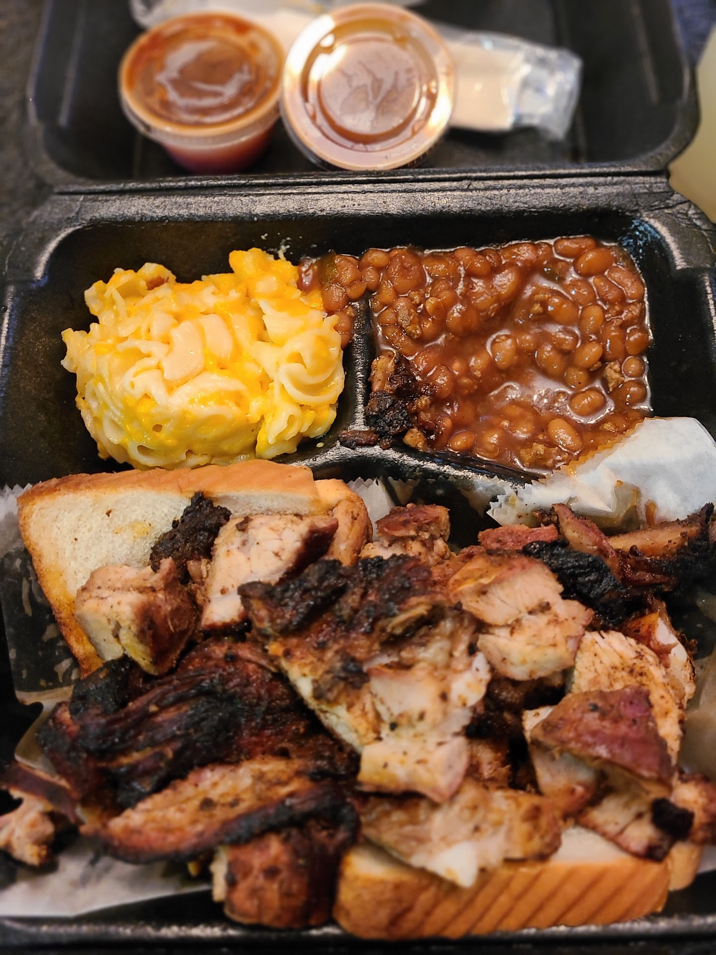 Read moreThis place is better than average but not by much. Good sides, no complaints⦠the meat is ehhh, the ribs have a nice seasoning on them but are tough, not tender or falling off the bone. Brisket is decent has a nice bark but nothing crazy. Hubby and I have given this place a try now on 3 separate occasions and we want to love it, but the meat...