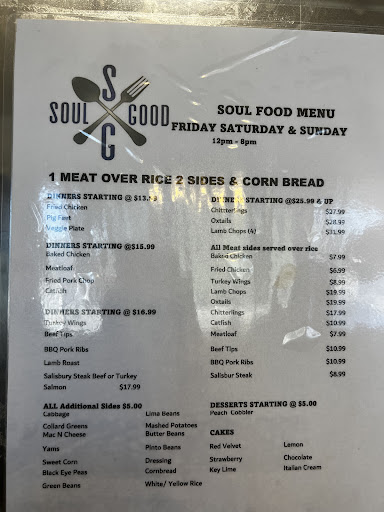 Read moreI visited here over the weekend (Saturday 7/12). I went after a long day because I wanted some good comfort food to make a crazy day end better. Sadly, this was not the case. I ordered the catfish dinner which came with two catfish filets over yellow rice, and for my sides I ordered collard greens and yams. The only real edible part of my order was the catfish. The greens were mostly stems and had too much of a vinegar taste. The yams were barely candied at all. They seem to have been sitting for quite a long time as they were dark in color and mushy in texture. There was little to no flavor in them whatsoever. Even the rice was a disappointment. It was bland in taste and crunchy in texture as if it had also been sitting for quite a long while. I did go to the restaurant around 6pm so I understand if fresh food wasn't available. However, I would prefer you tell me that items either aren't fresh or that there will be a wait while fresh food comes out of the kitchen. We spend too much money on poor quality food and it's getting out of hand at this point. To add to poor quality food is the lady taking the order and her nonchalant attitude. She does not appear to care if you're there or not and overall is not the most pleasant person to encounter. WE have...