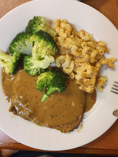 Read moreThe experience I shared at this restaurant with my wife was less than desirable. Service was slow, food was fresh but not flavorful, it was just vegan...nothing special. I had the country fried steak, collard greens, corn on the cob and a salad, my wife had the crispy tofu, steamed broccoli, and sweet potatoes, they ran out of mac and cheese so we did not get to try that. We also had an order of onion rings as an appetizer. Before we even ordered there was a group of people asking for a refund because the food they were served did not meet their standards, anyway, starting with the salads and appetizer, the salad was romaine lettuce with one cherry tomato and one cucumber slice each cut in half and a fork full of bean sprouts, borrrring, oh and it took 45 mins to get the salad and another 10 for the onion rings. because the kitchen literally cooks one dish at a time. The onion rings were fresh and lightly breaded as advertised, I really like onion rings in general so that is why I gave the food a 1. After waiting for almost an hour for the entrees the food arrived hot, but bland, the corn on the cob and the collard greens smelled like they were cooked in the same water and smelled like it was the same water everything else was cooked in for the entire day, I would describe it as water that you cook broccoli in and let sit for a few hours, less than pleasant. Throughout the meal because I sat next to the counter where the water was I repeatedly refilled my own water which is whatever, no big deal but my seat gave me the vantage point to see directly into their kitchen where after my meal I looked through the service window and saw the cook chowing down on something, right where the food passes through to the dining room, that is a big NO NO in terms of a sanitation violation. I passed on dessert after seeing that. The bathroom was clean, the ceiling needed some tile work, but the scene just looked dated, no effort into the decor. As for the service, too much to go in about on the service but I'll hit the highlights for you, neither server looked like they wanted to be there, I got my own refills and extra napkins, food took way to long to be prepared, and I generally didn't feel welcomed. I will sum my experience up by saying this, I have eaten at the Sunflower Cafe, the food, atmosphere, and service is much more inviting and enjoyable. I will not recommend nor will I return to this...
