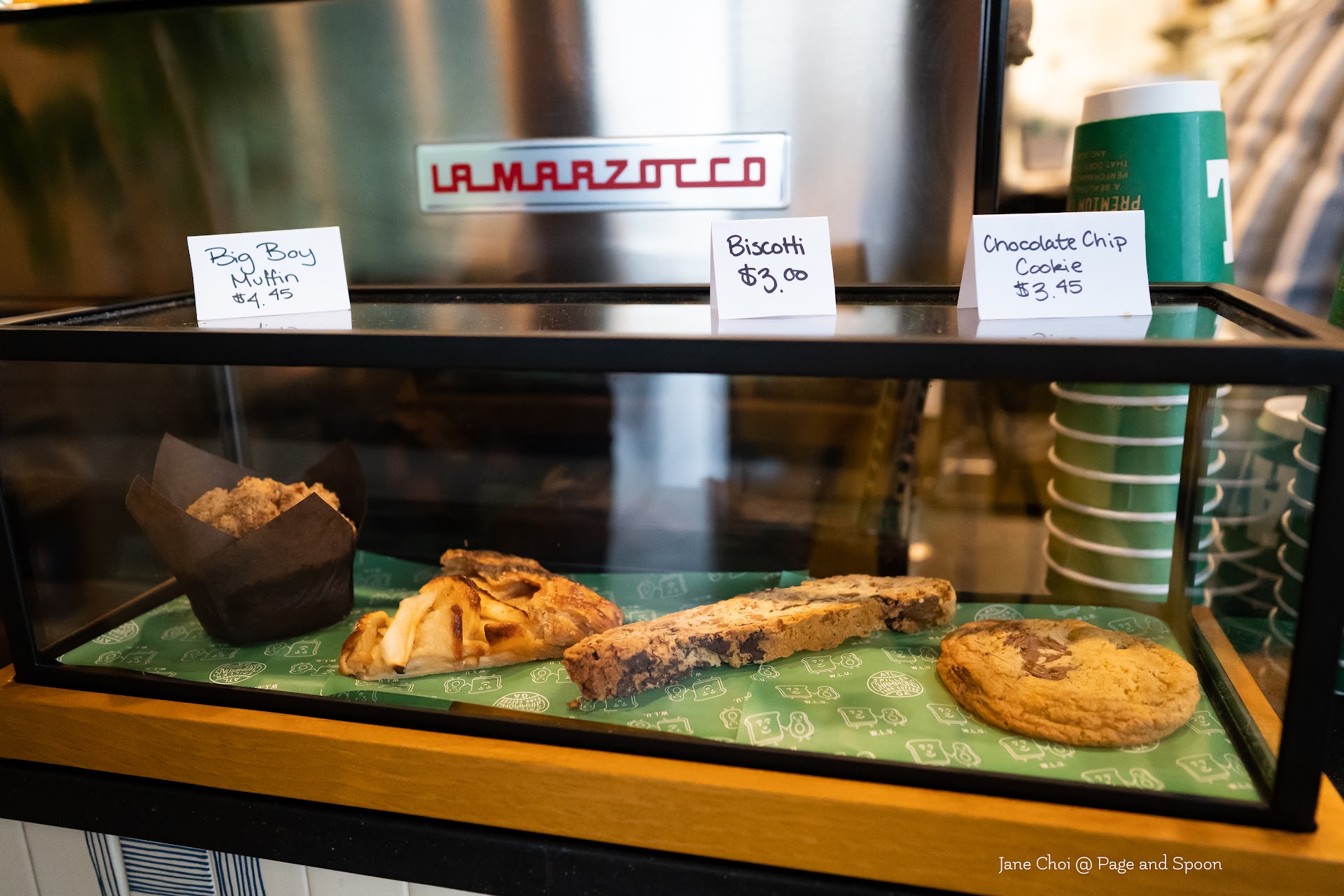 Non-dairy milks are available (oat and macadamia), and there are a number of bottled beverages available in a small fridge. There's also a small selection of baked goods available on the daily. We didn't know there was a menu of savory breakfast items until we saw all the Yelp praises after the fact, so it looks like a return visit will...