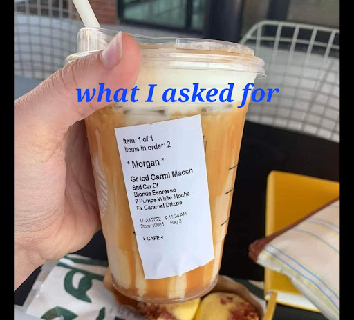 Another barista number 2 came and handed me the rest of the order. I asked her for the other girl's name. She paused, then said she couldn't give it to me. Strange considering every Starbucks I've gone to they usually have name tags with their name. So I asked her myself for her name. She scoffs at me again and asks why I want her name. I'm confused because, again, asking a person's name who works in customer service isn't an unreasonable question.