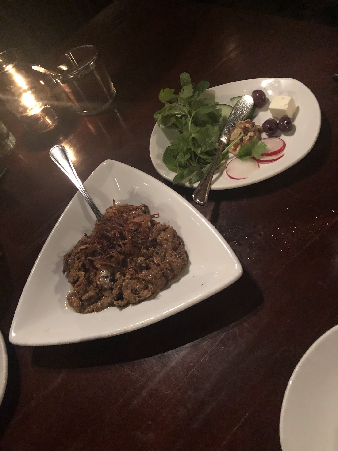 We used to dine in and take out from this restaurant on regular basis. We loved this place but over the past few months we’ve consistently had bad experiences with this restaurant. Several of my friends even complained about their meat quality especially the kabab .. coming always undercooked and tasting different in a weird way. I tried so hard to stay loyal to the place and especially preferred to order out from them when we have guests over and decided to avoid the kabab and choose from the variety of other options. However, every time I was disappointed at their quality in a different way. Until I decided that’s enough and called back to complain about my order. It was definitely sub par in several ways: the quantity of the meat and chicken was less, we ordered seven meals and three appetizers and they only sent six pieces of bread and ONE small cube of cheese with a couple of olives one of them was half broken along with two wilted cilantro and basil sticks!! The veggie skewers that I paid $14 extra were to see the least a joke 7 pieces of vegetables total!