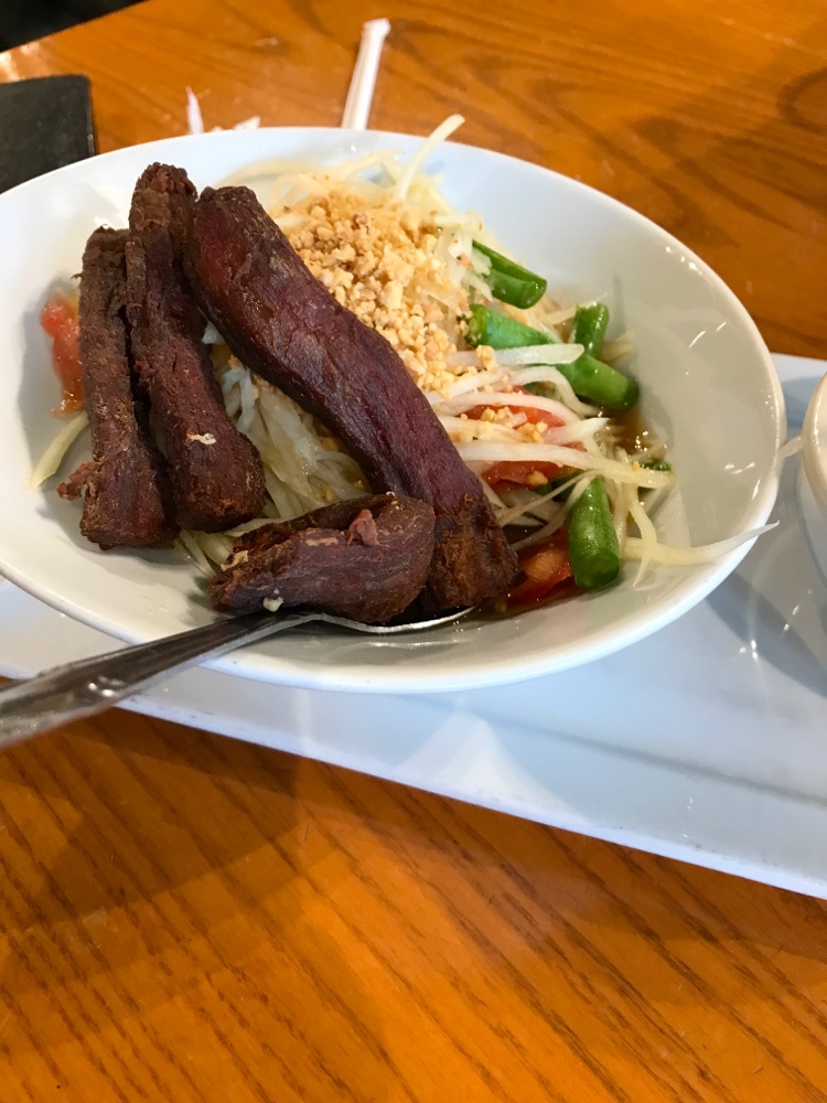 The spring rolls are your standard fare for a Thai restaurant. I enjoyed my moo yang, as it was well seasoned. I have also enjoyed their Chicken Larb, Thai Beef Jerky, and Thai Style Chicken Wings.