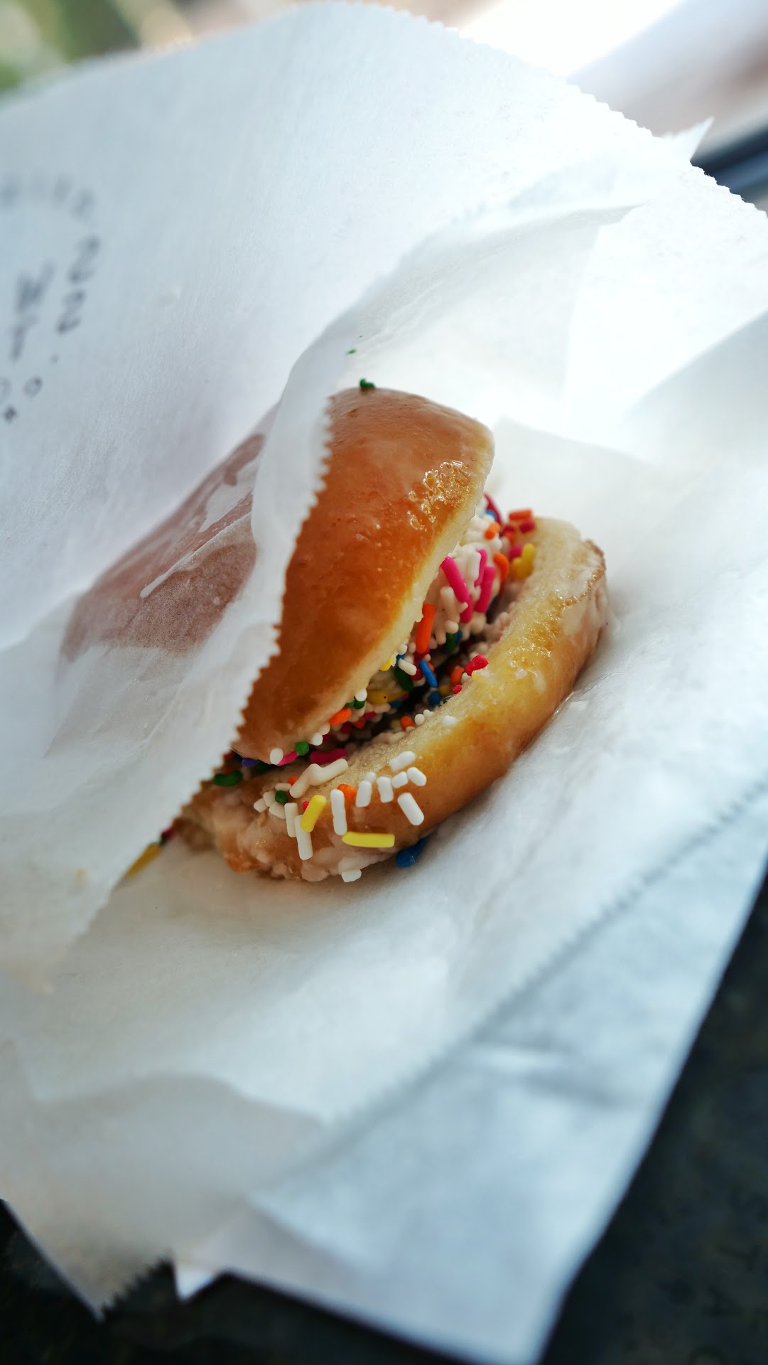 We checked into Yelp to receive an extra scoop ($1 off), or they give you 10% off your order if you like them on Facebook or Instagram. I personally think they’re a little on the pricier side for the quality, as a scoop is about $4 for a cup. They’re known for their donut ice cream sandwich, which unfortunately, we didn’t know till we saw someone get it. We will try...