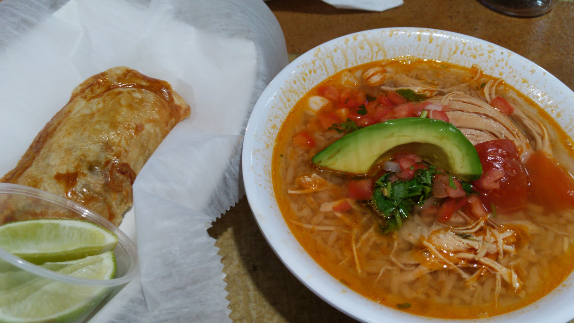 Really good place. I wish I knew about this place before but happy to have it close to my office. After trying different tacos (asada, milanesa, chicken milanesa, pastor, fish, tinga ...) today I decided to try their chicken soup and was wonderful. Full of flavor, red rice on it, avocado and lime on the side because lime can't be missing in a plate like this. Empanadas are also a good option for a more street food style. I still need to go over other items in the menu but so far everything has been really good. Flavor water is my way to go but I also enjoy Jarritos or a mundet. There are two reasons I give 4 stars: a) sometimes the chicken gets overcooked and is dry, but still full of flavor and chicken milanesa still my favorite taco b) they use too much of the single-use plastic like water cups, plastic ware, straws and plates, and I'd like to not feel guilty for going to a place like that. In the positive side, they never deny to put my drink in my tumbler cup. Plus: music is fun if you know the genre, some oldies, some salsa, some pop, pop rock, rock en tu...