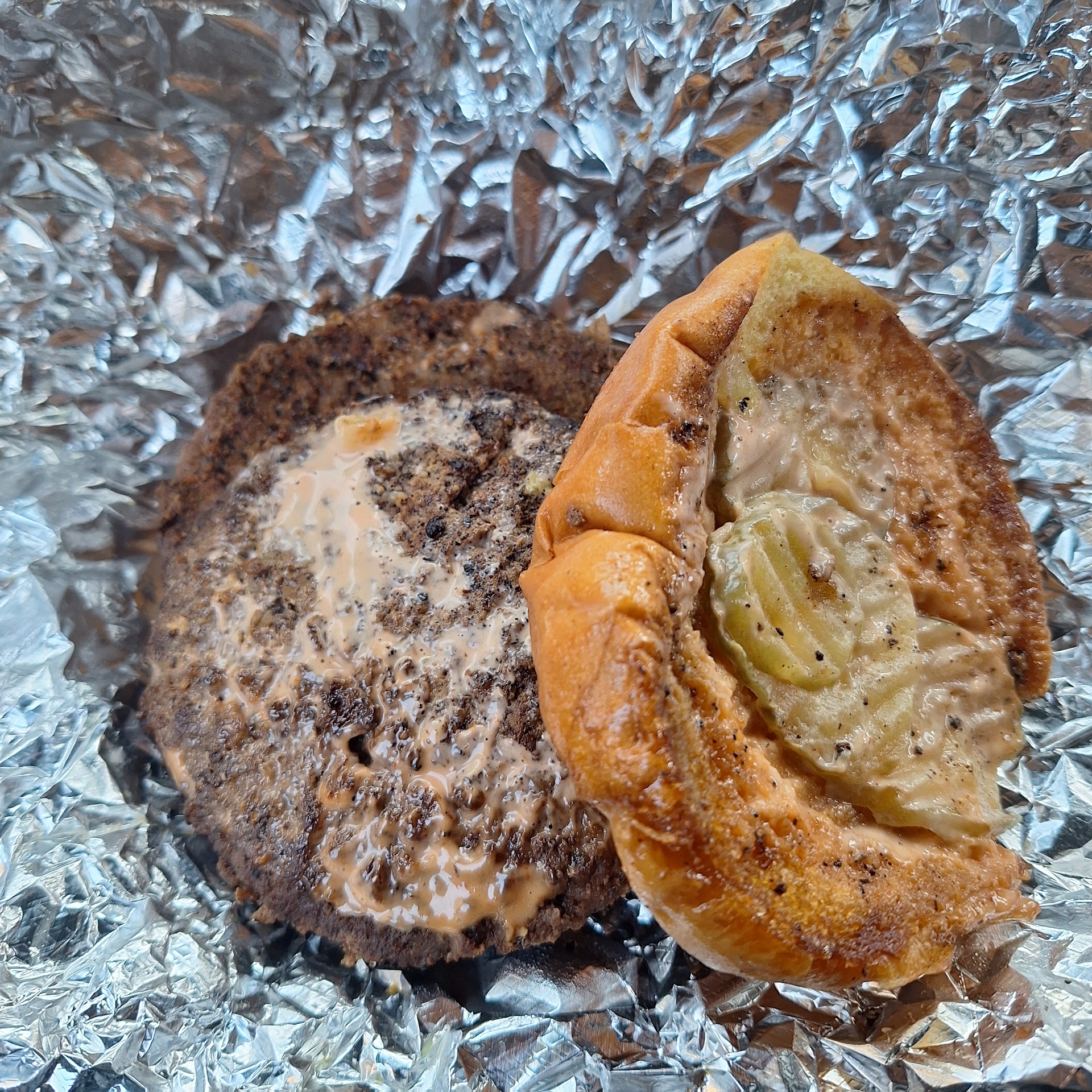 So I paid $10.75 plus $8 tip for a plain double patty with regular sauce and regular pickles. If I didn't have to wait almost 30 minutes for my food, I would've left this alone, but every time I look at this burger, I get pissed off.
