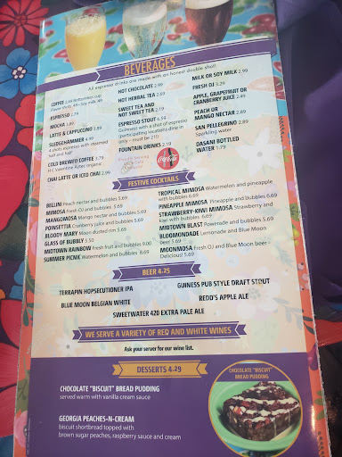 I ordered the "Eg-stravaganza" and swapped out the French toast for a waffle. My food came so fast I thought they were serving the wrong table. The good stuff: My bacon was perfectly crisp and the chicken sausage patty was surprisingly quite tasty (I don't usually care for chicken patties). I don't care for eggs unless they are hard cooked. Now.....my eggs were NOT cooked hard as I requested, however the consistency was acceptable because the cheddar cheese was perfectly blended in so as to give the flavor profile I like. I prefer my waffles a bit crispier on the outside, but this waffle was tasty enough with the topping of butter and syrup on it. I also ordered a side of the potatoes which were perfectly seasoned, slightly crispy on the outside and tender in the center! The not so good: the "white cheddar" grits left much to be desired. (I make some "mean cheddar grits" which I slow cook for a long time to get a very tender texture.) Well, they got the texture right.... but the flavor was bland with no real trace of the cheesy flavor I expected. And they were NOT hot considered that my meal came so quickly. (My memory of the food at the midtown location just seemed a bit more gratifying)