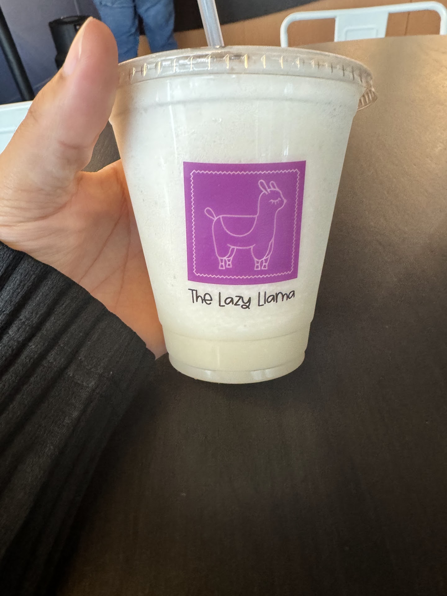 Read moreI was looking for a little coffee near midtown and google showed the Lazy Llama at Atlantic station. I was going to target so I decided to stop in here. The atmosphere was cute, maybe a tad childish but overall comfortable with different seating options like a couch, table or arm chair. I must say with the crepes being made in such a small space when the waffle iron start to smoke a bit it can be a bit overwhelming. It’s not terrible but definitely worth noting. I think they should have a fan sucking air out so it doesn’t get too pancake burn smell inside. Anyways i ordered the Lemon smoothie and the Berry Crepe. Both of which were fine. The smoothie began separating pretty quickly unfortunately but it didn’t impact too much and the was average. The berries were fresh, the sauces were alright, the crepe itself could have been silkier and softer but overall it was tasty. Both of the employees were very kind and did great. Overall, my experience with lazy llama was alright and wouldn’t my returning if someone...