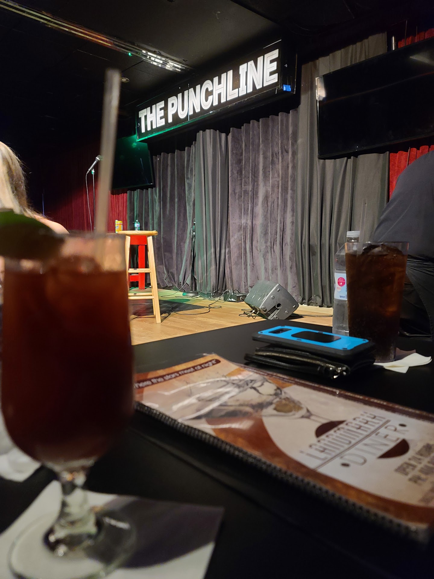 Read moreFirst time at the Punchline to see Dan Cummins. Upon walking up we thought that this was going to be a cool place because it's an old 50 like style diner with half converted into a comedy club. Got there early as it recommended to on the ticket and we figured it would be busy. Waited quite a while and didn't get let in until 15 minutes after the show was supposed to start and the lady who did so had a huge attitude and couldn't find our names at first. Were seated in the very back where it was so tight every time staff or people walked by I was smacked or ran into. Intimate, more like packed in like sardines. The show went on without any issues and all was well until the bill came. For just four drinks and a bottle of water the bill was $70. Way over priced for very low quality drinks. No prices listed and dinner drinks are normally more but wow. Last before leaving the bathroom situation was atrocious. No paper towels. Pee all over toilets and the floors just plain gross and unkept. If they would take the money they make on overcharging they could do some simple updates to the room and it could be a little nicer. Over all not a great experience except for the show itself. Won't ever come back to this location to see anyone in the future. Just...
