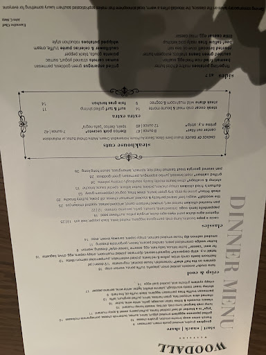 For the prices The Woodall charges, look elsewhere. The portion sizes and prices may remind you of Bacchanalia or other tasting menu-type restaurants (seriously.. Bacchanaliaâs pasta is cheaper and they have a Michelin star), but the quality of the food surely wonât. The food tastes like business class airline food (not a compliment) which is unacceptable at this price point.