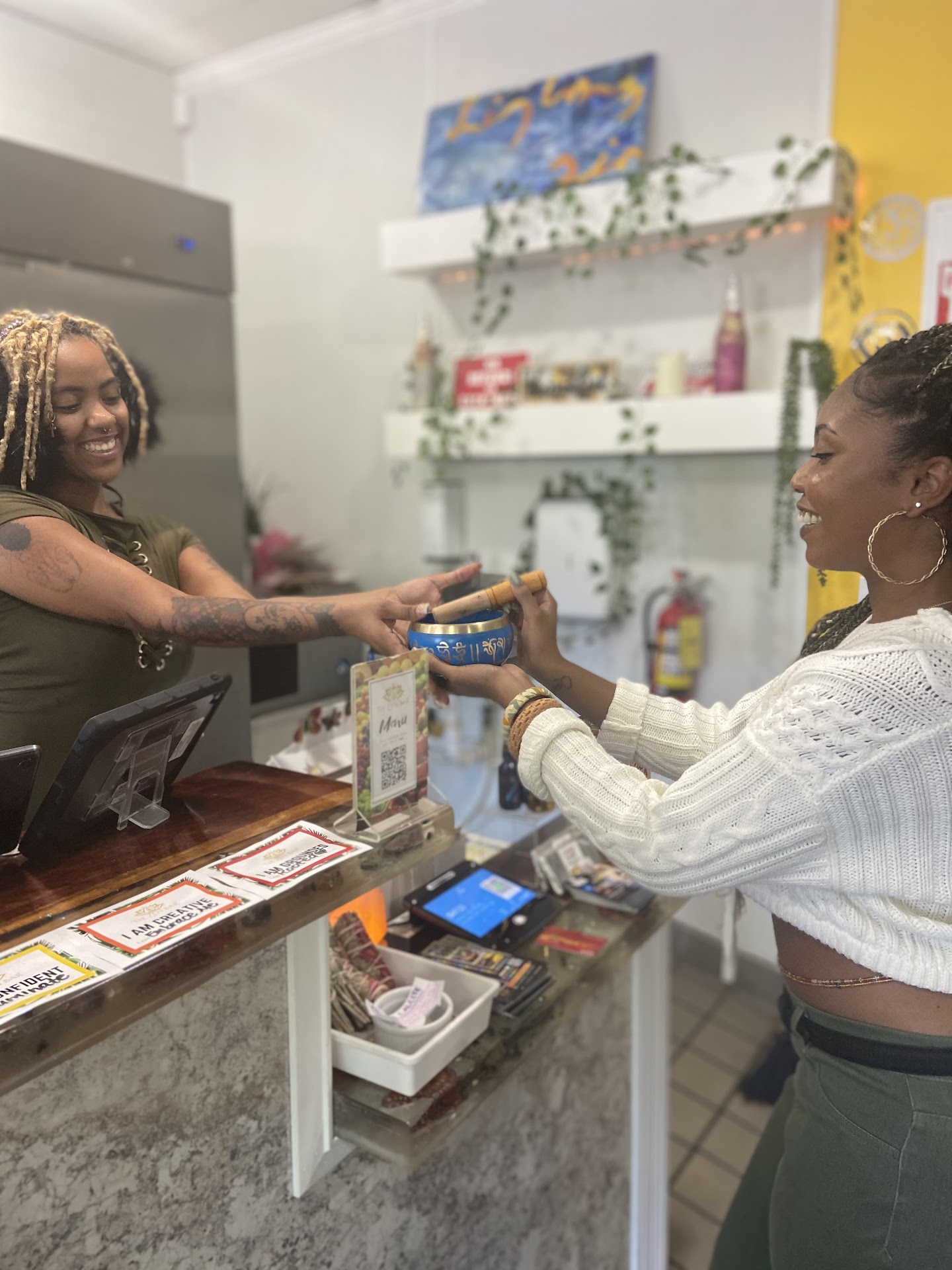 Ā Ā Ā Read moreWhere do I begin? The atmosphere is so on point! My friend and I are on a spiritual healing journey and we decided to visit this establishment. We were greeted by an energetic, kind, staff member named Moriah. She was very knowledgeable about the products and told us how to order. My friend and I both purchased the root chakra smoothie and it was so delicious. We were suggested to buy the jerk empanadas and they were good. Iām not a fan of anything spicy so this says a lot. The vibes in the place were so positive that we ended up hanging around longer than we had anticipated. We also met one of the managers and she was a whole vibe herself. She taught us how to properly use a sound bowl and my friend ended up purchasing one. I canāt wait to go back to this place to experience one of...