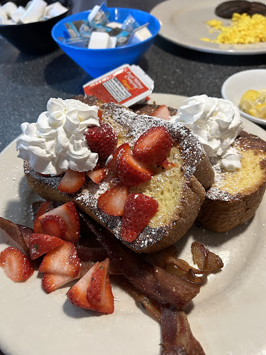 My girlfriend got some eggs scrambled with salmon and cream cheese, along with a bagel. I couldn't find the exact description online, but that was it. She got an everything bagel that made this unique dish a good sized breakfast. I was a fan.