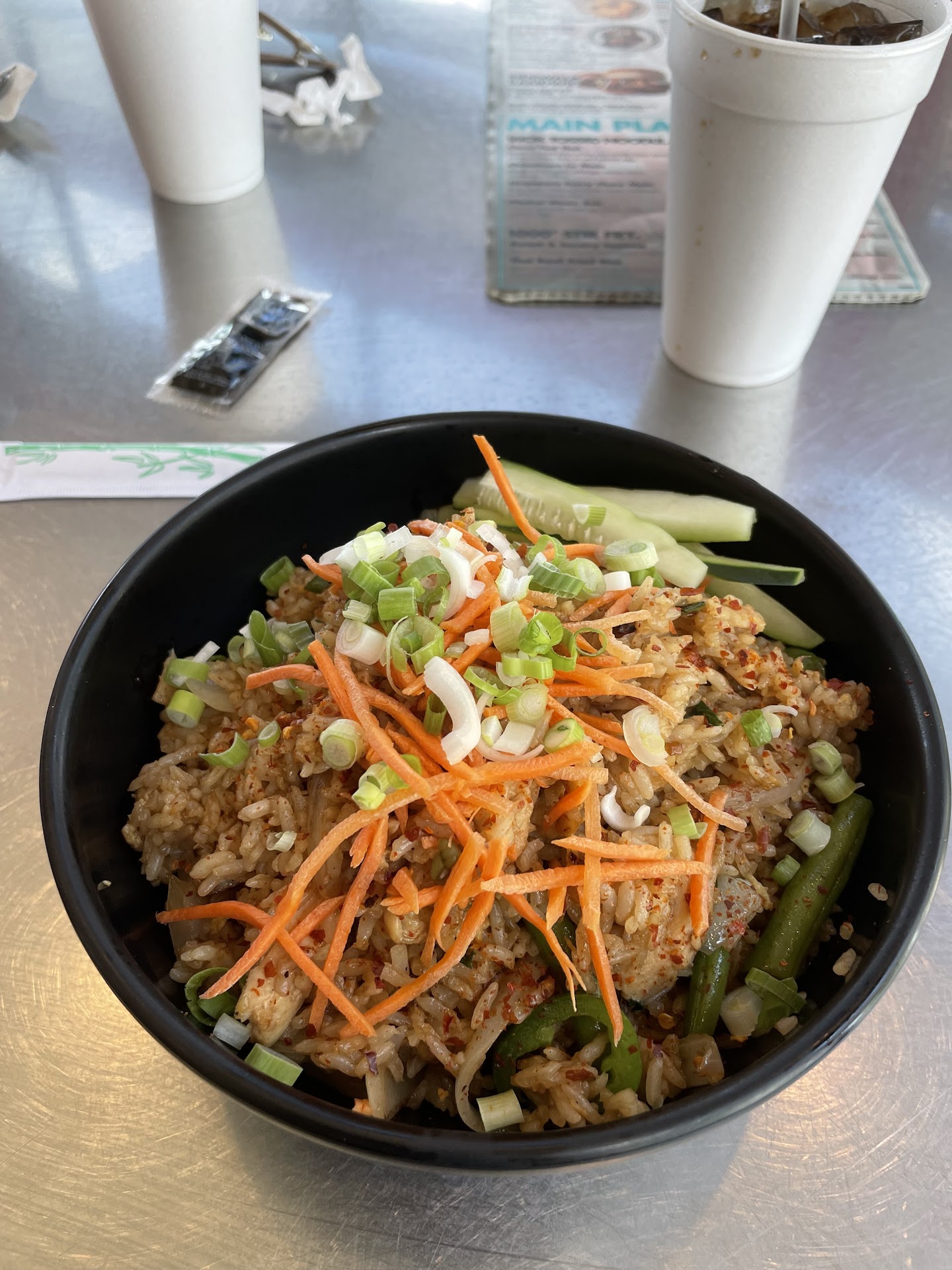 Read moreThe previous time I went to this place, the line was really disorganized and a fight almost broke out while I was waiting for my food. I then got food poisoning after having the Panang curry with chicken. I gave it a few months and wanted to try it again because it’s pretty close to my house and have had good experiences at other locations. So I try this location again tonight. I order online and I show up 10 minutes after it was supposed to be ready. I walk in and am finally able to ask the cashier about my order and they say the internet is down so they haven’t received any orders. They take down my order and ask me to wait. It is another 30 minutes before my food is ready. I will give the workers credit that they were handling it as best they could given the circumstances. I ordered the Thai coconut curry soup and the panang curry with chicken again. And again tonight, I have gotten food poisoning. So this will be the last time I try this location. I know the food at other locations is better and have never gotten food poisoning there so I will just drive farther in the future. I don’t recommend anyone go between the inconsistent service and the food poisoning that has happened twice over the course of multiple months, it just isn’t worth it. Drive to a farther location or pick a...