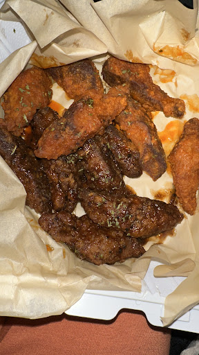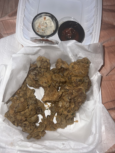 But for a Sunday I suggest having 1 more person to help with orders, communication of readiness and being able to answer client questions. I personally am very patient.... Yet I know the majority of people are not .... This is from my own restaurant experience and from the few individuals I saw inside the restaurant while I was waiting. Also, the fact that I could have received 20% off should have been mentioned since I was very open on this all. Yet I believe we will be back.....bc lie I said he was cool but most of all THE FOOD WAS AMAZING!!! Yes we ordered both type of wings .... The 5 piece SEITAN (See-Tan) AND the 10ct Oyster Mushrooms wings ..... Both with fries.... And they were still delicious when we hit home....
