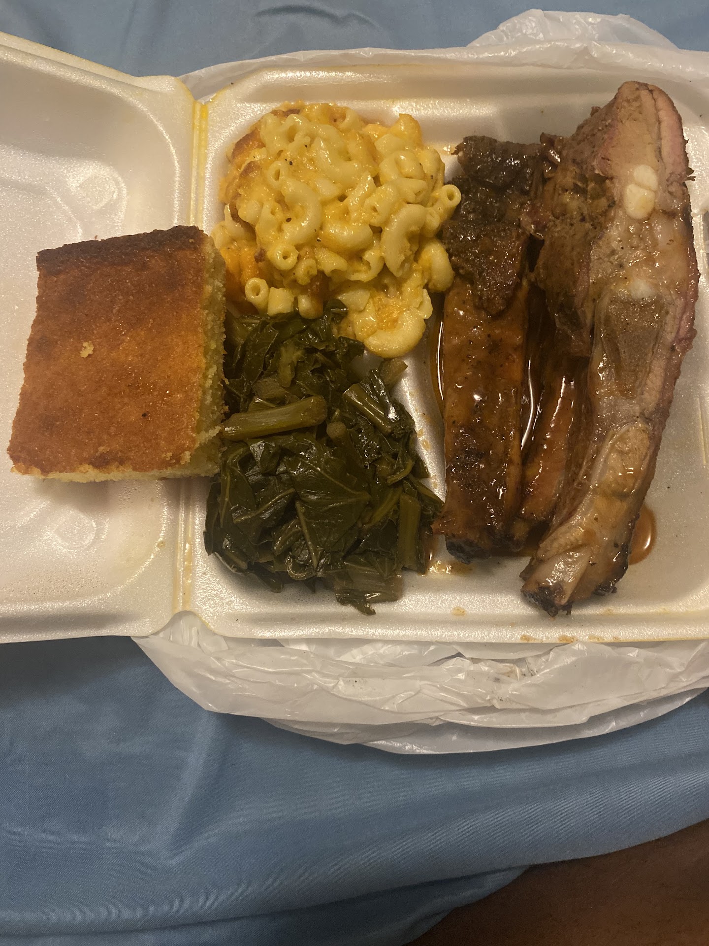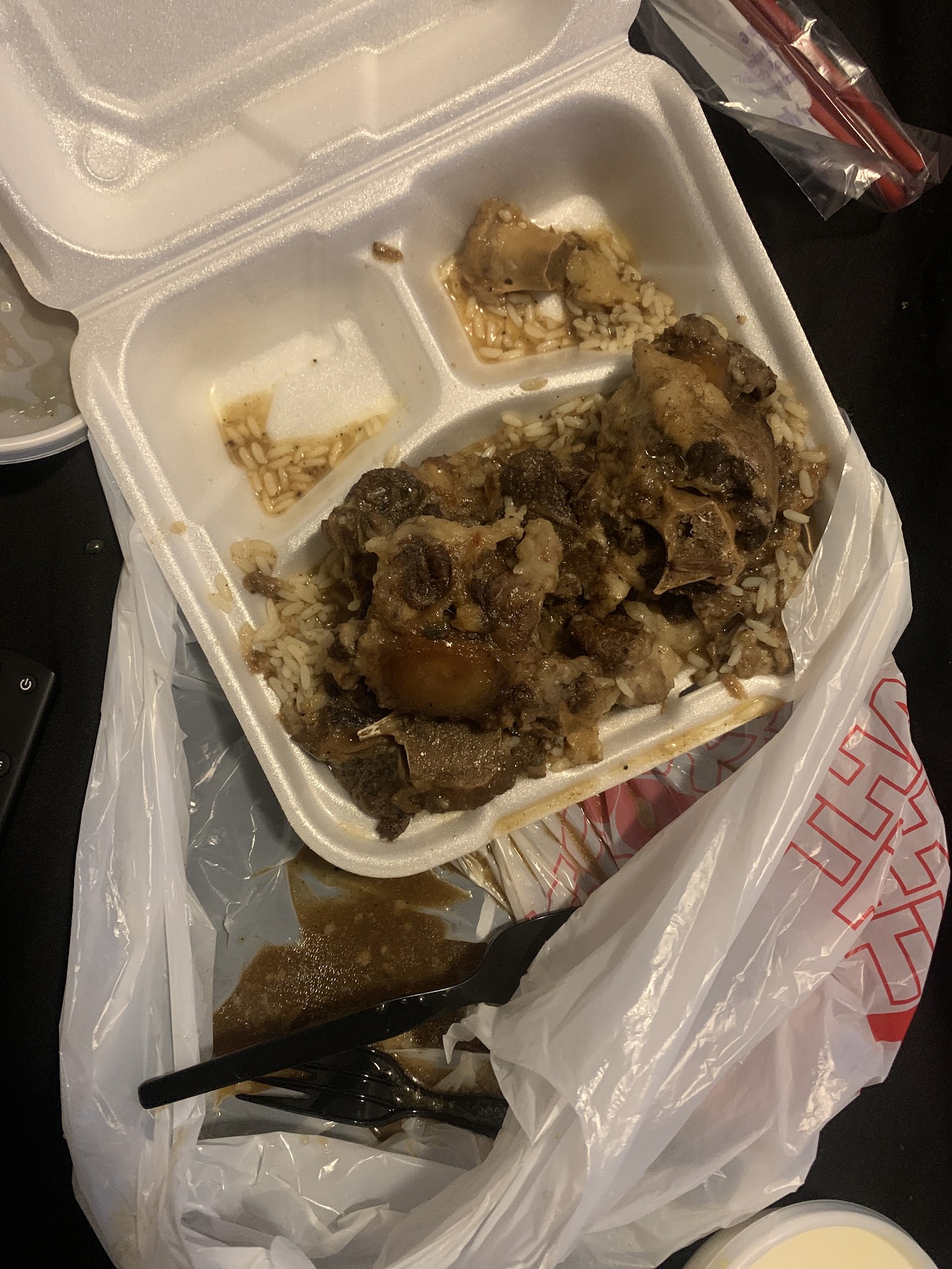 On our way home, my father and I couldn't stop complaining about how disappointed our plates looked. I struggled to understand what was the difference between the regular dinner and the large dinner. Hoping to not be as disappointed with the taste of the food as I was with the look of the food, I began to eat. I was not pleased. The oxtail gravy was nothing but salty brown water. My mac and cheese was salty and my...