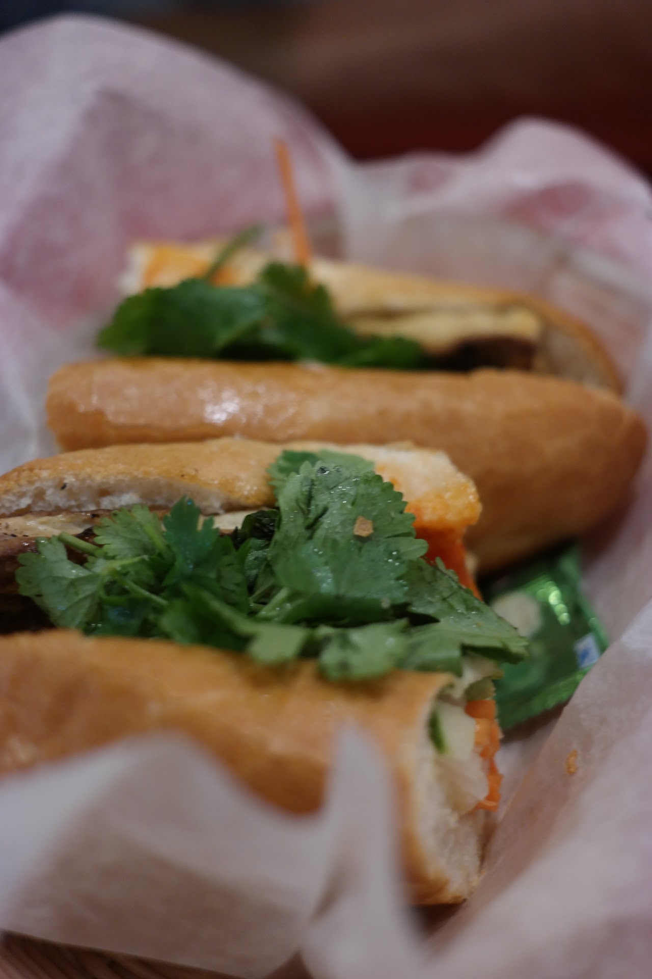 With the variety of vendor options surrounding a central seating area, a diverse group can eat together and manage to keep everyone happy. There are even a taco and a noodle stand for mu fellow leary eaters. I took my friend's advice and had a Vietnamese Lemon Grass Chicken bahn mi sandwich. No intimidating ingredients - basically a sub sandwich - but the...