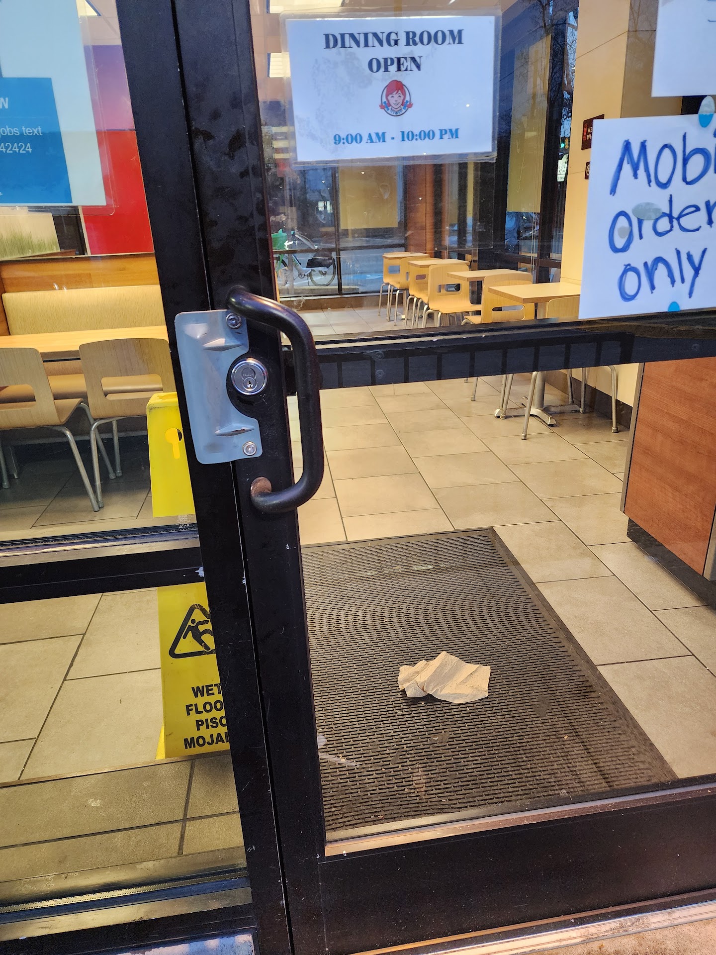 I love Wendy's frosty (thou I can make them myself now, anybody want the recipe just ask🙂) Now that they all serve breakfast I prefer theirs over Mac Donald's and I don't usually have a complaint. I got there yesterday morning around 9am and she tells me the system is down, she didn't know when it would be back up, and oh yeah, the breakfast sandwiches were free both fri and sat which I didn't know at the time. I decided to wait in the parking lot because I was fixated on a bacon egg and cheese croissant and a cup of coffee. As I sat there watching cars come in and get the same info as me, and back out again around 9:50am I decided I would leave and go to MacDonald's. Their line was long unfortunately I decided to go in, of course their frappe machine was down. Multiple people including one of the frontline workers were without mask, I was just glad to get out of there. As I was driving back by Wendy's I noticed a line of cars so I swung in and got in line. When it was my time to order I was told the sandwich was free, it took an ordeal but I got my sandwich plus the delicious potato wedges and all is good in the neighborhood...🌞 🙂.