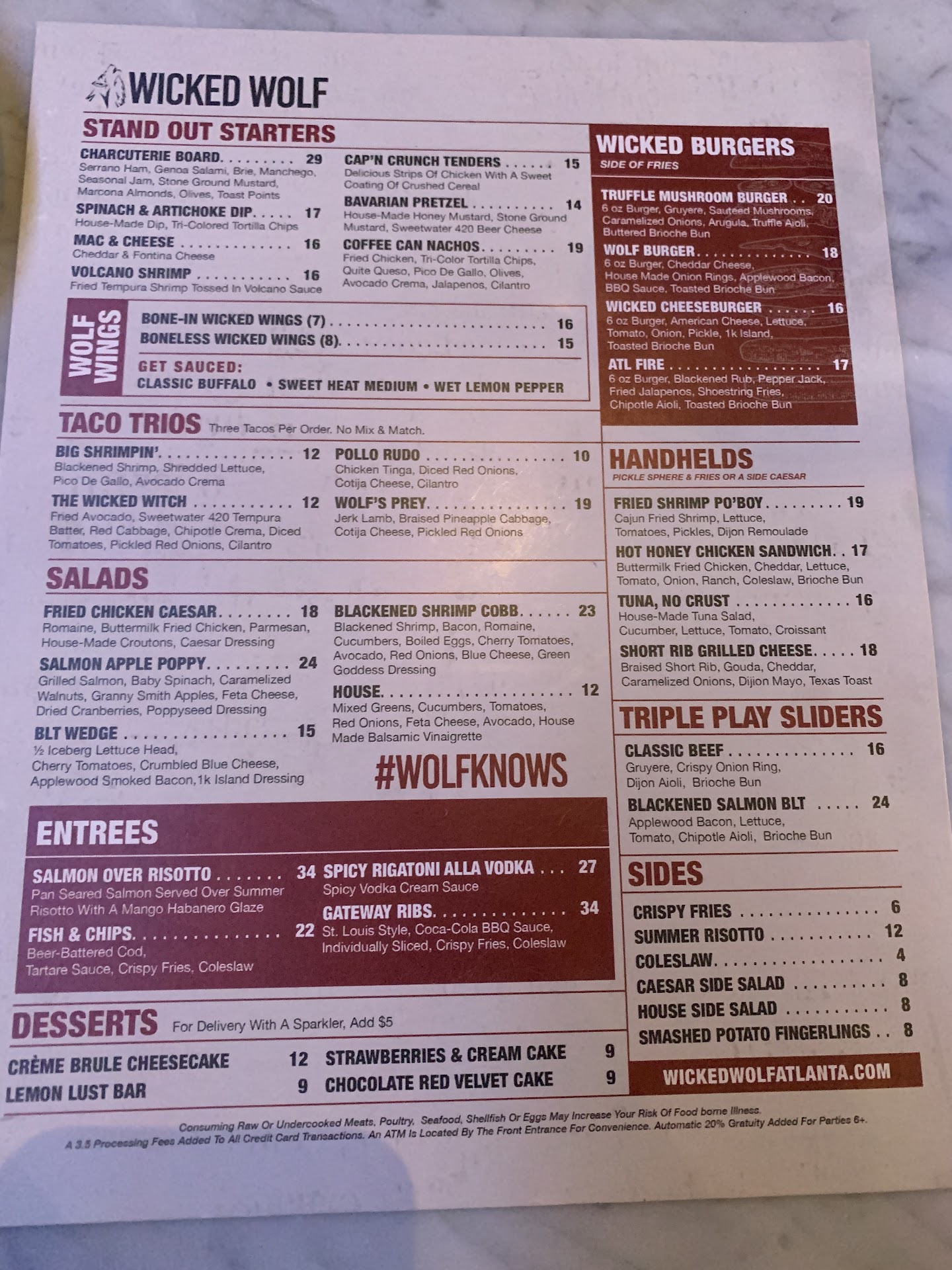 After reading many positive reviews I decided to plan a coworker happy hour here. Needless to say, we will not be back, and my office is in midtown and Wicked Wolf just lost all our business. We came here for a chill afternoon happy hour, arriving on a Tuesday around 4:00pm. The music was so loud that we had to yell to even hear each other. Many in our party even left, saying they were getting a headache. I asked several times for the music to be turned down. At one point, the server told me they were auditioning a new DJ and when the managers came out of a manager meeting, she would get permission to ask the new DJ to stop. Now tell me, how does that make any sense? How is an establishment going to audition a new talent but then be in a meeting so they can’t hear it? Needless to say, to have the music at “club level” on a Tuesday at 4:00pm is not the vibe I was going for.