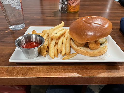 Ordered the flounder sandwich for 16$, the bun was the exact same as the buns you would receive for your school lunches, the “fish”? HA, quite literally laughed when I pulled the bun off of the top, there was a larger slice of tomato than there was fish on the “sandwich” not over exaggerating when I say there was less than 2 oz of “fish” on this sandwich. The bun weighed about 2-3x what the fish weighed. The waitress was very sweet although she was busy due to being the only one waitressing. We also ordered the shrimp and flounder basket, which was 20$ and it was ok, however we didn’t even get the coleslaw that came with the order. however when you spend 43$ (after tip) and you still have to go spend another 10-15$ at a fast food restaurant just so you do not go to bed hungry, you would just be better off ignoring the existence of this so called restaurant all together. DO BETTER HILTON!!!(400$ for “2 days” of stay even though the all together time that you are allowed to be checked in for, for 400$ is 20 hours) the staff all were wonderful as well as the...