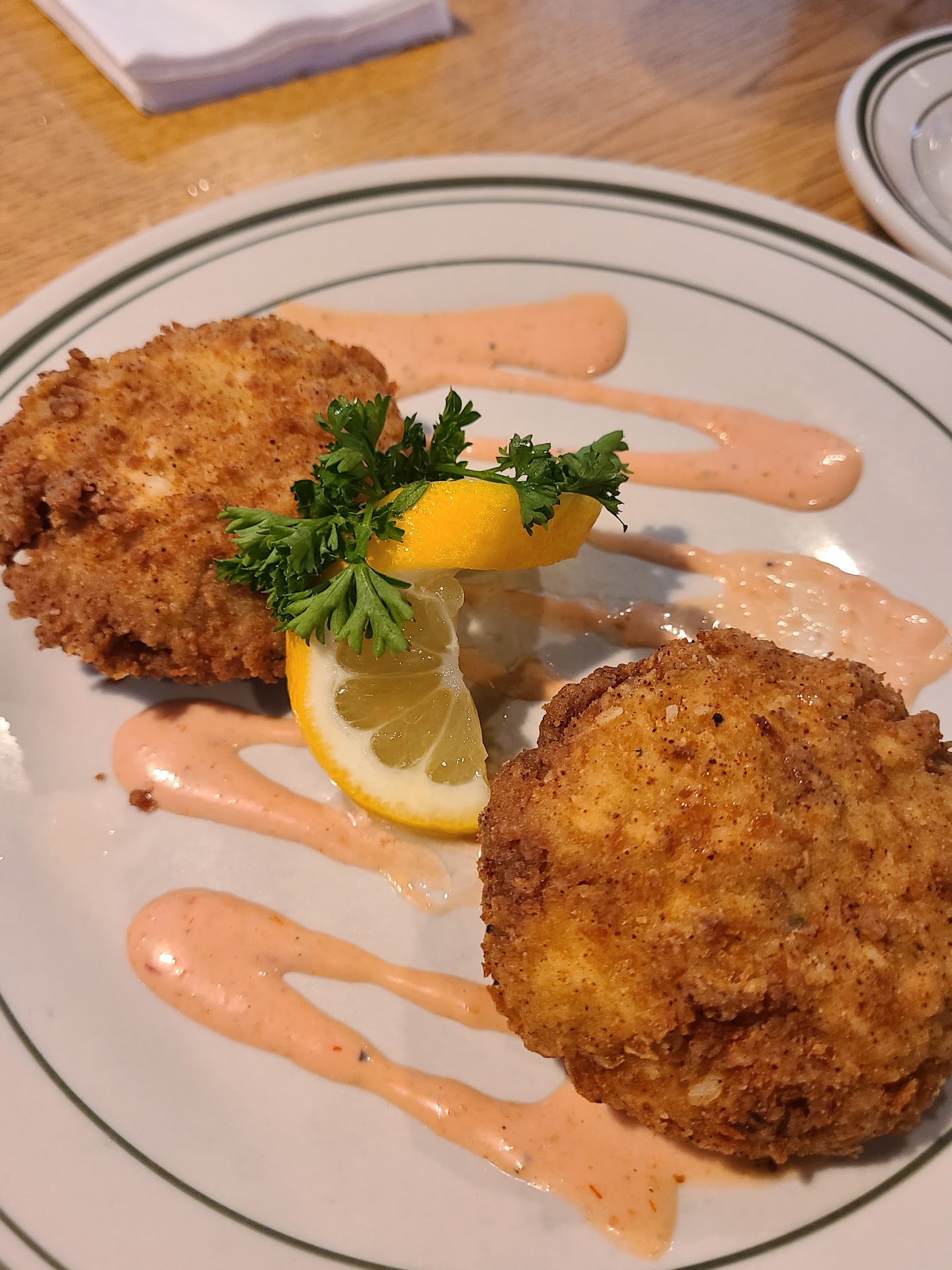 We also ordered the CRAB CAKES. Really good. Light and not a lot of filler. Outside was crisply fried and the inside had great texture showing it was cooked perfectly. Remoulade sauce was good too. I've had a few that were too good.