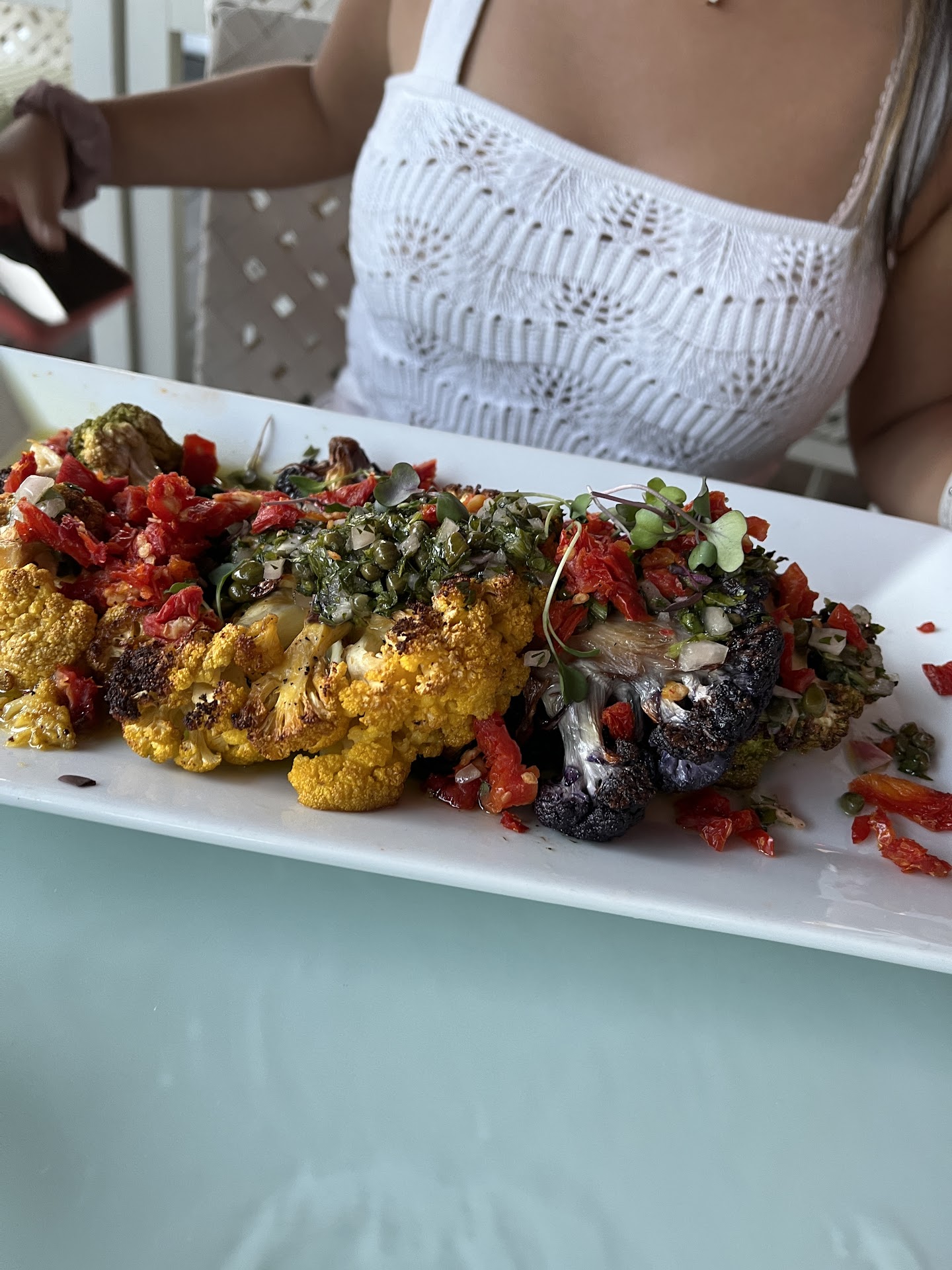 Food also took a ridiculously long time to be served, about 25 minutes. The cauliflower steak was amazing though - the cauliflower was roasted really well, had great texture and was pretty tasty. We also got the mussels and flatbread, which were alright. Pesto pasta was way too cheesy in a way that overpowered all other flavors and the chicken bits were tough.