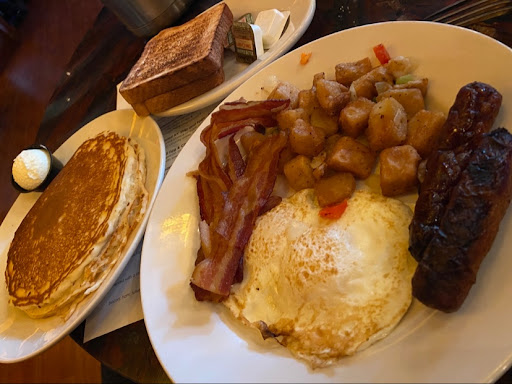 We didn't have utensils when we sat down but we figured they would be given when the food was brought out. We were wrong, after waiting 5 mins to find our waiter, he said he would be right back with them, after waiting another additional 5 mins, we had to go to almost the kitchen to find someone to give us utensils after our waiter was nowhere in site. When he finally returned, ANOTHER 5 mins (totaling 15 mins just for utensils) he then proceeded to lie & say "they didn't have any silverware", but by the time he came back, we had already gotten assistance from another waiter & he was able to get the utensils in 2 seconds. At that point, the food had gotten cold. He never checked on us & took forever to come back with the bill. I had avocado toast, my grandma had pancakes & we were there for over an hour because of how slow service was. I know it's the only breakfast option at the casino, but I would rather leave the hotel & go elsewhere spending the money we did for average food &...