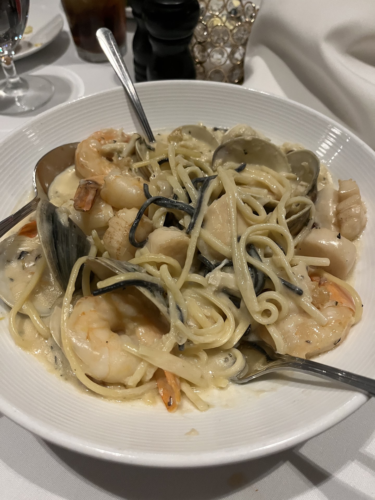 Our appetizer was the Wygu Carpaccio…it was delivered perfectly rare and peppered. The beef was accompanied by beautifully arranged arugula and pecorino parmigiana, and it was absolutely delicious!