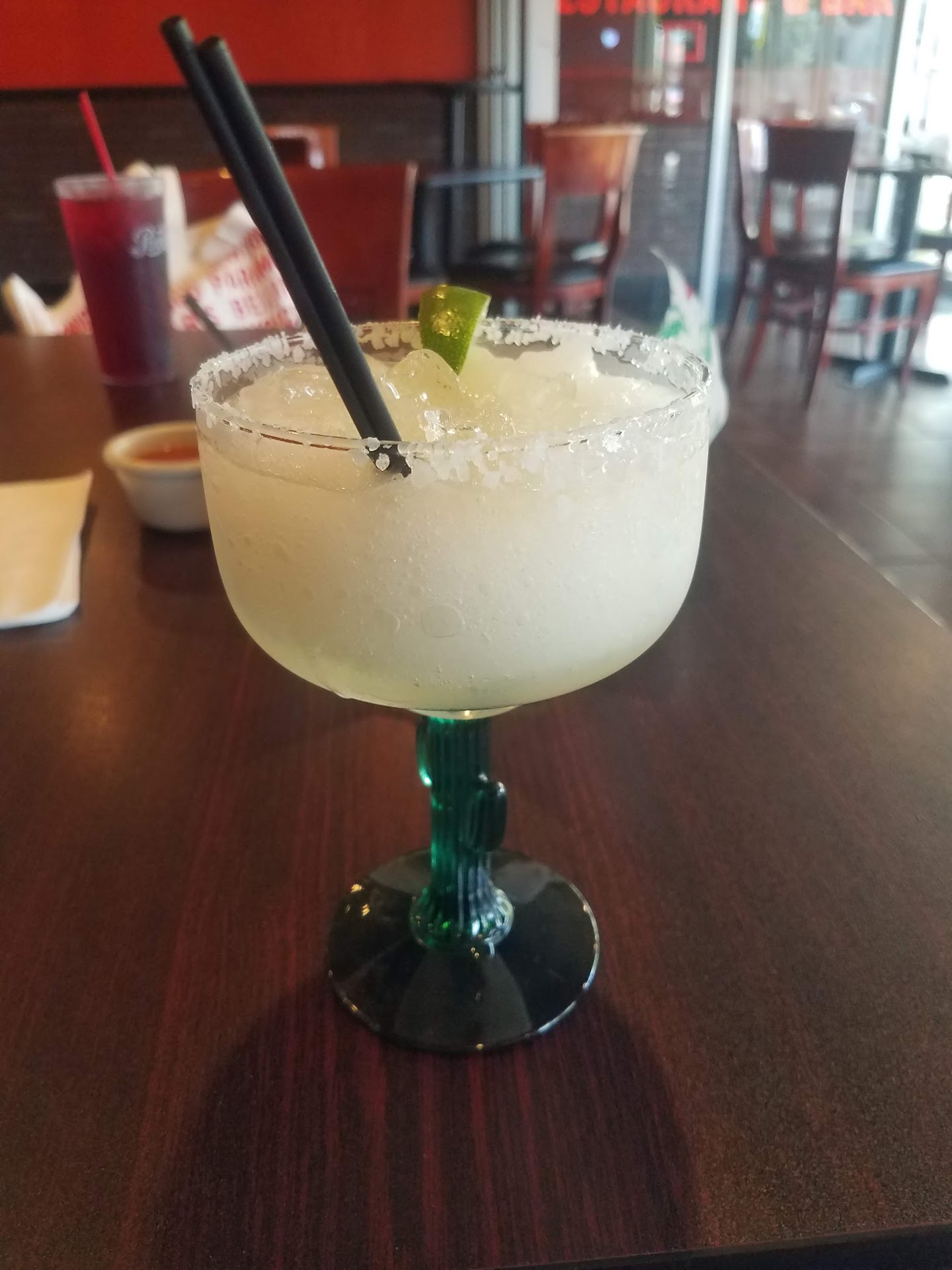 We arrived for an late lunch/early dinner at around 2 pm. The place was almost empty except for another table of 4. There were about 6 tables that were filled with glasses and plates with leftover food from previous guests. There were a couple of flies The place was warm because they did not have the AC on even tho it was 95 F out. I ordered a frozen margarita and it was very good however the food was not as good as expected. The grilled steak my mom ordered was salty and not cooked medium as requested. It was not cooked on a grill as advertised and was pan seared. The chicken fajita I ordered was a very generous portion but it ...