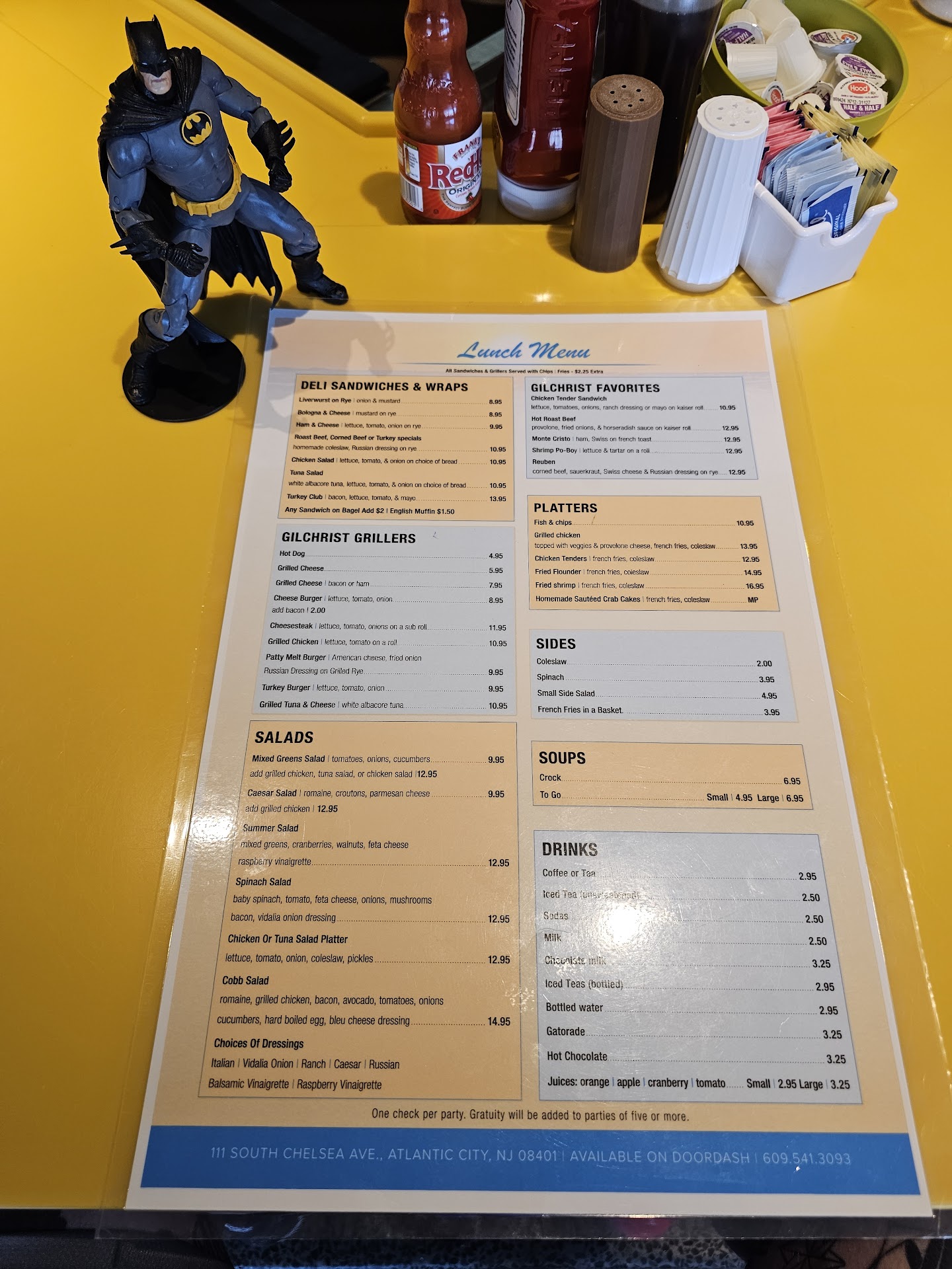 First I'd like to say that I was extremely disappointed with this new location on so many levels from the staff to the food that came to the table. I've always been a huge fan of Gilchrist making this my first stop once coming into Atlantic City today to only find the original location had closed early due to complications. So my mom suggested we visit the new location on Chelsea Ave. The staff was very unpleasant & no one came to check on whether things were ok or if anything else was needed. Our waitress Colleen or Illeen, I know her name had a "leen" in it acted as if me & my family were inconveniencing her by coming here, especially when my mom asked for a coke & a coffee, and she literally said in a rude manner, "you want a coffee too" as if it was forbidden to ask for both. When the food finally came to the table, the food was "COLD" all of it. I have never had cold grits in my LIFE!! Until I experienced this "NEW" location. I don't know about anyone else but I like my food hot, especially my grits.The food may have very well been hot but Colleen was very busy filling up syrup bottles, salt shakers, and laughing with other staff instead of attending to customers. This location is NOTHING like the original location & every single person in the Gilchrist location on Chelsea Ave needs to take hospitality classes or get out of this industry!! If this location doesn't improve, it will diminish the upstanding reputation Gilchrist has worked so hard to accomplish hence why this new location came about. I come all the way from Maryland & Atlantic City is well known for tourism & if I could give negative stars for this review I would. I will not be returning to the Chelsea Ave location ever again & honestly I probably would've recieved better service from McDonald's as well...