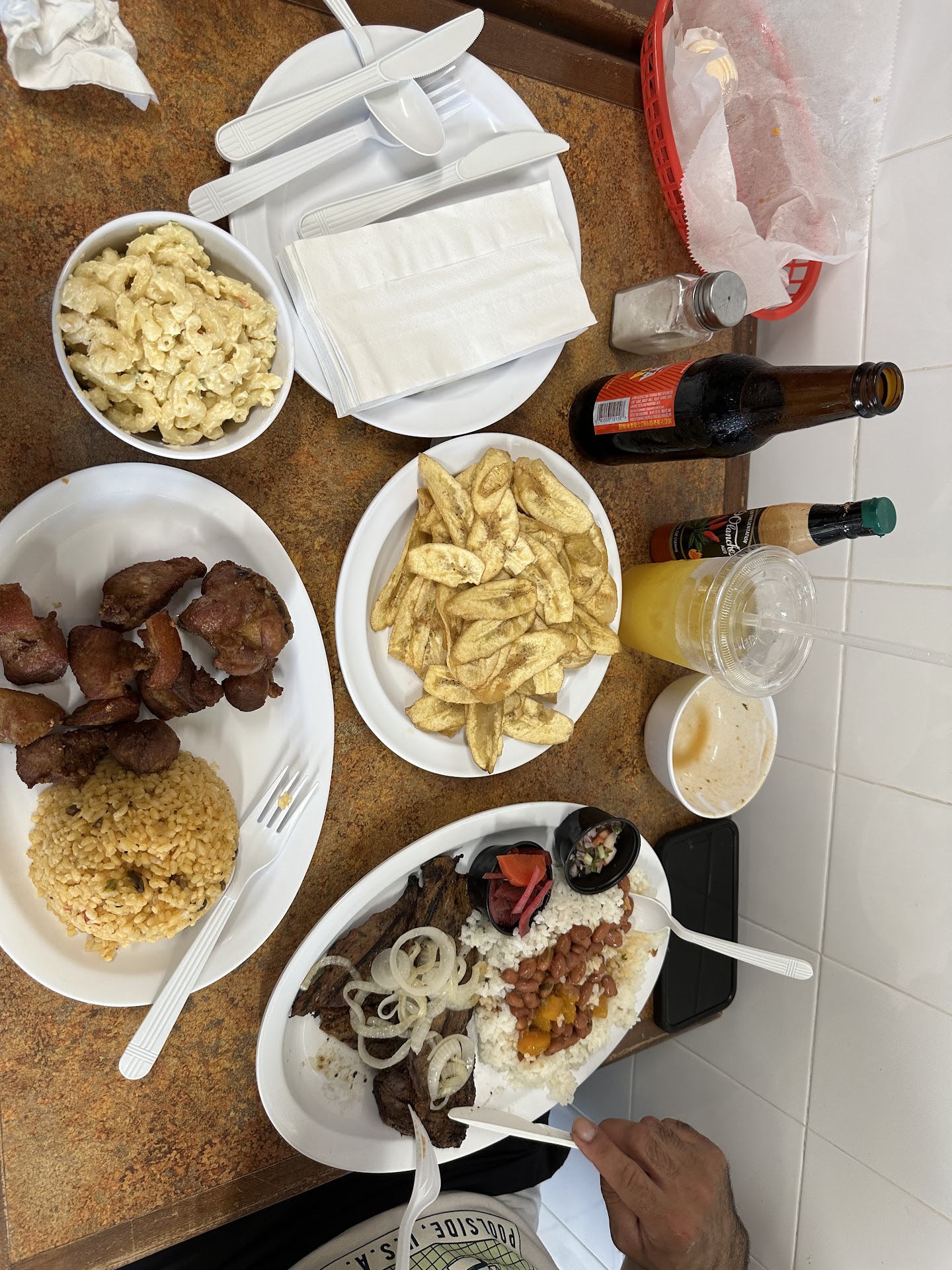 The ladies there were nice but it was way over priced and there were some discrepancies. I wanted pernil with arroz con gandules and potato salad. It was about 6:30pm when we went and they were out of the pork, so I opted for the carne frita. Overall I give my meal 7.5-8. The meat was flavorful, the rice was good and I later found out they were out of potato salad so I chose the macaroni salad instead. I wasn’t crazy about the salad because it was bland, it only had elbow macaroni, mayo and peppers. My husband had the fajita steak meal and he gave that a 5. He said the steak was dry and bland, the beans they gave him for the rice was also flavorless but he ate it cause he paid for it. My daughter had the chicken tenders with fries (the fries were good) she didn’t have any complaints. This is where I was a bit annoyed. At the very beginning of ordering I asked for a chicken pastelillo, when the lady brings it out she says here’s your chicken and cheese pastelillo, I tell her we wanted it without cheese and she stated they only have the one with cheese. Wouldn’t she think to ask what else would we want since they didn’t have the pastelillo I asked for ? The second part is that those 3 meals and 3 drinks and the pastelillo came out to a little over $65. Once I made it back to my hotel I looked at my receipt and noticed that I was charged for the macaroni salad. Because I ordered the potato salad with my meal and they were out, I figured the macaroni salad would be my new side but no, I was...