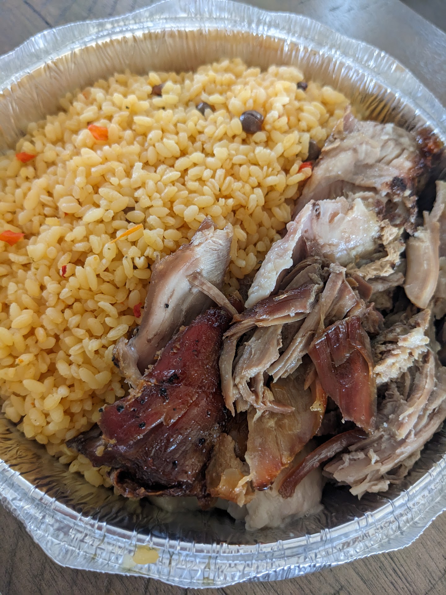 Read moreOrdered yellow rice with roasted pork (large) The yellow rice was good, the pork came served in a bowl (soup cup size) with 89% fat liquids and juices. The pork pieces were shreds. It looked like scrap pieces from the bottom of the tray. I would not have known it was not supposed to be served that until checking out and everyone's order looked different and presentable as the pictures from others post. Husband ordered stew, it was watery. Alcappurria was oil drenched.