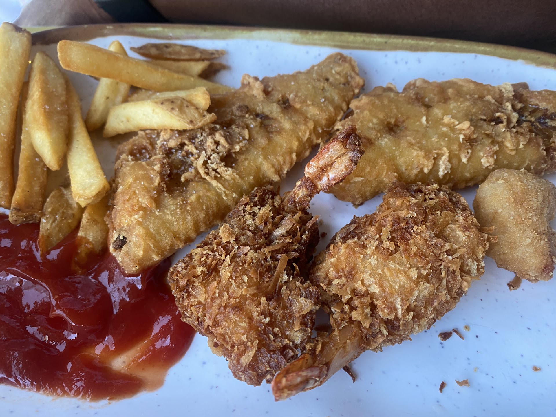 First off, my boyfriend and I googled reviews on this restaurant prior to visiting. We figured since there were so many 5 star reviews, our experience would be great considering the beach is footsteps away. Upon entering, there were two Caucasian females at the entrance. Neither one acknowledged us. They were conversing about one being a new hire and how the customers will love her because sheâs so âGreatâ at what she does. They literally looked at us and continued to converse. Iâm not sure if one was off the clock or whatever the case is, but itâs completely unprofessional to disregard customers. After a minute or two, they both walked off and we were standing there waiting to be greeted. A woman came out, had us seated after two mins because they were cleaning the table weâd be seated at. A few minutes later, we were greeted by our waitress. We placed our order which included appetizers, main entree, and drinks. It took about thirty minutes JUST to receive our drinks. We spent over an hour and a half waiting on appetizers that didnât come out until after our entrees. We inquired what the delay was, and was given three different stories from three different waitresses. One mentioned that there were new chefs hired, who didnât know how to make a lot of the orders. Thatâs fine, because we all need to have patience as things take time to work, right? Another waitress mentioned the chefs had to remake the appetizers but failed to specify on what exactly was the reason our orders had to be remade. The coconut shrimp was decent, but I honestly feel it was because we were beyond famished, as we waited over an hour and a half for food. My boyfriend had the âSeafood Combo,â which literally reminded me of the frozen Gortonâs fish you buy at supermarkets. Attached are the photos of our meals. His fish looked as if it were refried, and our fries were mostly burnt. What shocked me about this whole ordeal, was the fact other guests who arrived after we did, were served first and in an efficient manner. We felt as though the staff were literally picking and choosing who to serve. Our waitress didnât receive a tip and Iâll explain why. In that hour and a half of waiting, she checked on us ONCE, which we felt was beyond unprofessional. It doesnât hurt to reassure your guests that although thereâs an issue, youâre doing your absolute best to change the narrative so that this wonât happen again in the future. We spoke with a manager who didnât charge us for the HORRENDOUS appetizers. Although weâre grateful for that, it doesnât satisfy us that this was our first experience and definitely our last. We understand that everyday wonât be 100%, but in the same breath, this is an establishment that is showing us their food is a reflection of whatâs really going on in the back. I donât think corporate would appreciate the fact that plates like these pictured are being served, nor do I believe theyâd appreciate the lack of customer service. Also, your staff should be aware that when it doesnât seem âBusy,â itâs not the time to converse about non related work issues, especially when your guests can hear you. When the appetizers came out, we were beyond disgusted. My boyfriend ordered the âPeel & Eat Shrimp,â which states theyâre ââŚserved hot and topped with Old BayÂŽ seasoning. Served with our house-made cocktail sauce.â They failed to mention that the shrimp arenât cleaned AT ALL, and itâs literally sprinkled with Old Bay seasoning. Where is the originality in that?! I wouldnât waste my time, nor money at this restaurant ever again. It sucks because you guys have the blueprint; a huge restaurant overlooking ocean views, so many staff members, and you all have dropped the ball. So many issues that need correcting, and Iâm hoping someone from corporate can visit and shed light so you can bridge this gap. Another issue I noticed is the lack of cleaning when a guests leaves. I was very disappointed by the napkins and food all over the floors outside, especially on the actual beach. Again, you guys have the blueprint. You have...