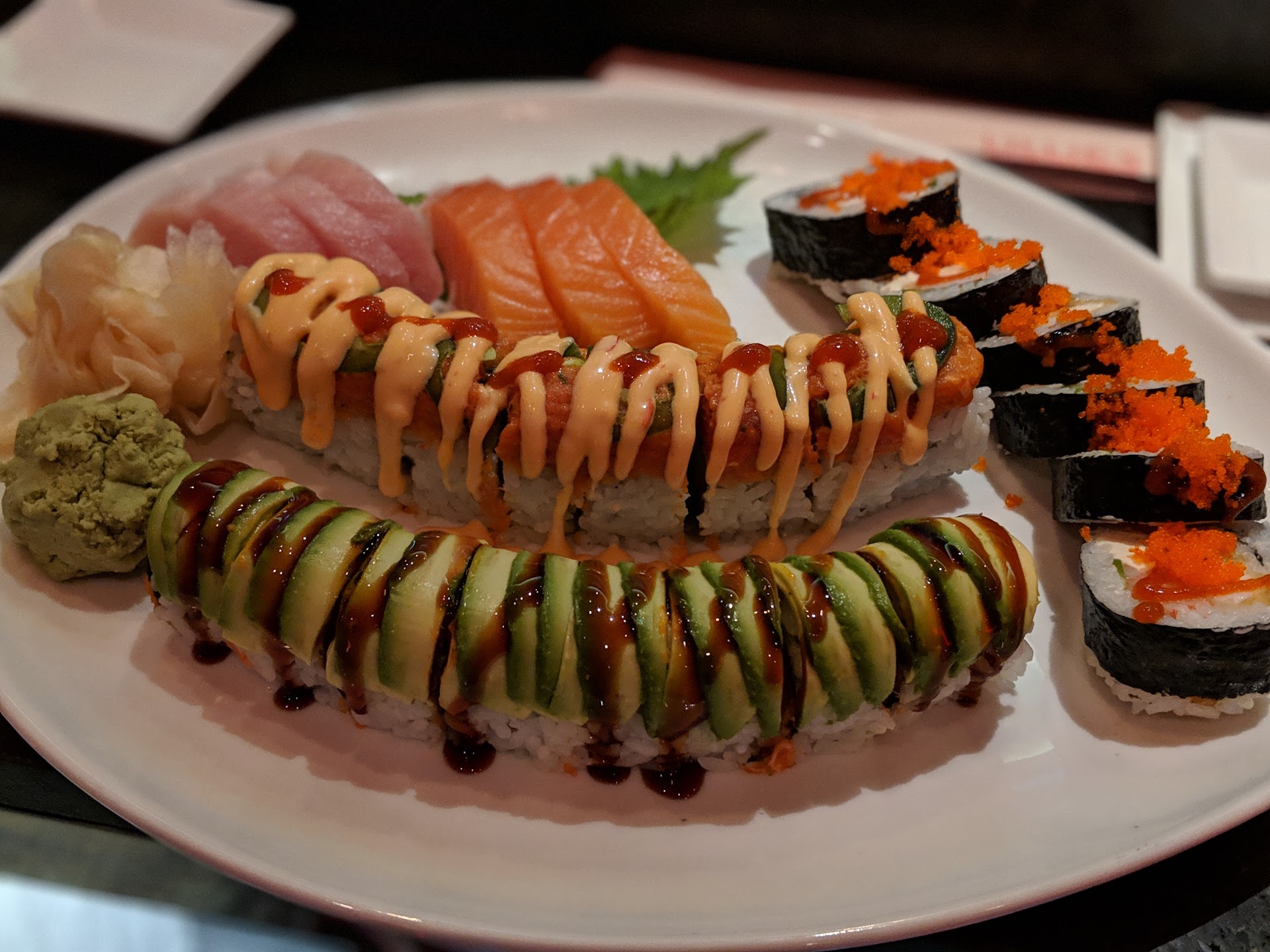 What a joke of a profession business. If there were negative stars I could give, it would be the first time I use that feature .Waited for over 30 min for our drinks, over 45 min for appetizer and please explain why we had to wait 1.5 hrs for our entre? The food did not make up for the ridiculous wait . At best, the food was on the low end of average (this is me being nice). Oh and trying to get our checks is another whole story. Three of us had to separately name off our food (thank God each of us has good morals and integrity) and then wait for another 30 min for our checks . As we waited for the checks, the lady making sushi at the sushi bar is gesturing the universal "crazy" sign and pointing at our waiter and says he's new and doesn't know how to separate the checks . another waiter finally came over and asked us if we are waiting . Our waiter finally starts bringing our checks but one person has an item that he didnt order and the waiter says he will pay him the price of the item out of pocket and not say anything, because he would be in trouble because he's only been here a short time. This tells me that the training is horrible and the fact others saw this man struggling but no one helped him. Also, the guys was scared of the manager for making a mistake .I'm in disbelief .please avoid this place if at all possible, regardless of how much you love sushi or Asian food or the fact nothing else is open in...