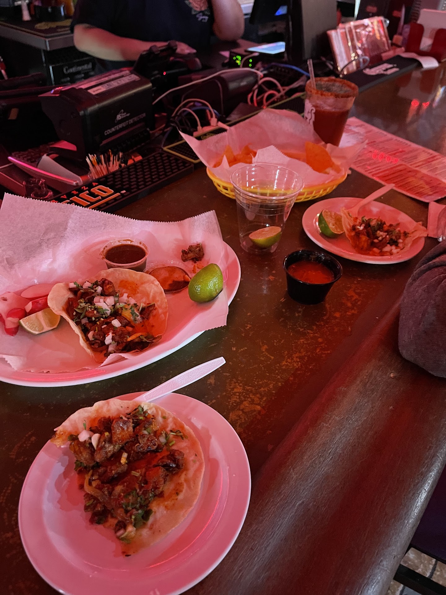 The atmosphere was amazing, looked just like any Mexican bar/restaurant with classic Hispanic music playing. The bartender was lovely and sweet. My issue was the food tho! I ordered 4 chicken tacos with no onions, a 10 piece chicken wings and two strawberry margaritas while waiting for the food to be finished... So the margaritas were not good at all and ended up being $28 (which is hella high in pricing) The food comes, I hand over my card for a total of $63 (which included a lil $5 tip just to be generous) Lemme tell y'all something! Check your food before you leave, I didn't smh. I get halfway across town and decided to open the bag and grab a chicken wing. The chicken wing taste ok but they also taste like the wings that Shell gas station be selling. So I opened the tacos container as well, and guess what!!! Only 3 tacos, and all had onions on it! But it's cool, I take a bite..... Never again! I'm a Mexican taco eating expert, and my gawd Lord baby Jesus mother Mary their chicken tacos are horrible. So one star...