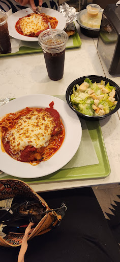 I’ll start by saying I’ve been here many times since 2019. We basically order the same Chicken parm meal, 2 pizzas 1 cheese & 1 cheese, onion, olives and banana peppers both pizzas were ready delicious. Chicken parm was totally flavorless and covered I mean drenched in watery sauce literally my toddlers spaghetti was floating in sauce. I had to actually drain most of of it out to be edible. Caesar salad was eh 1/2 way filled up with rock hard croutons. But the dressing was decent after adding parm cheese, salt and pepper. I’m not sure what happened to the quality of the pasta but this is 2nd time it was terrible. Not sure but the guy at the register is always so dang mean to customers. I watched a family order 8 pizzas paid them ask for plates he ignored them walked away and they waited until he came back out they asked again he gave them 8 plates he counted and told them eat from the boxes if the...