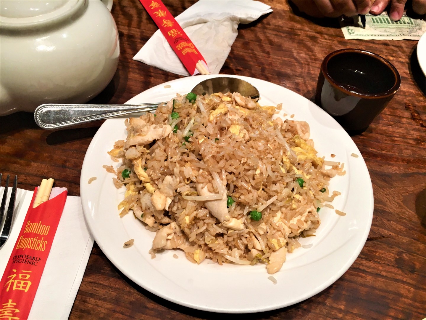 We got the table but got the feeling server did not want us there… they did not even ask for water. We ordered Singapore Noodles, Chicken fried rice, and Mai tai drink. My wife liked the noodles but the drink was very light, we asked our server to pour more alcohol but he rudely said NO. we called the manager and complained about it, He went and brought our drink in no time but it was the same. He said either have it or returned it. Finally, we returned it. Fried rice was more or less boiled rice with no taste.