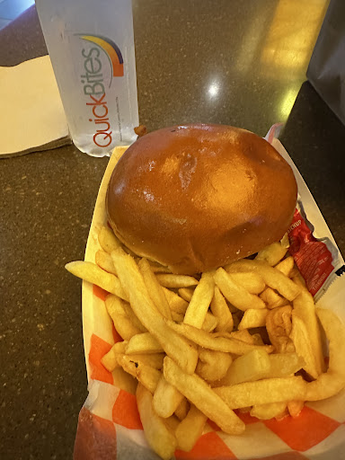 Burger, fries, and water...