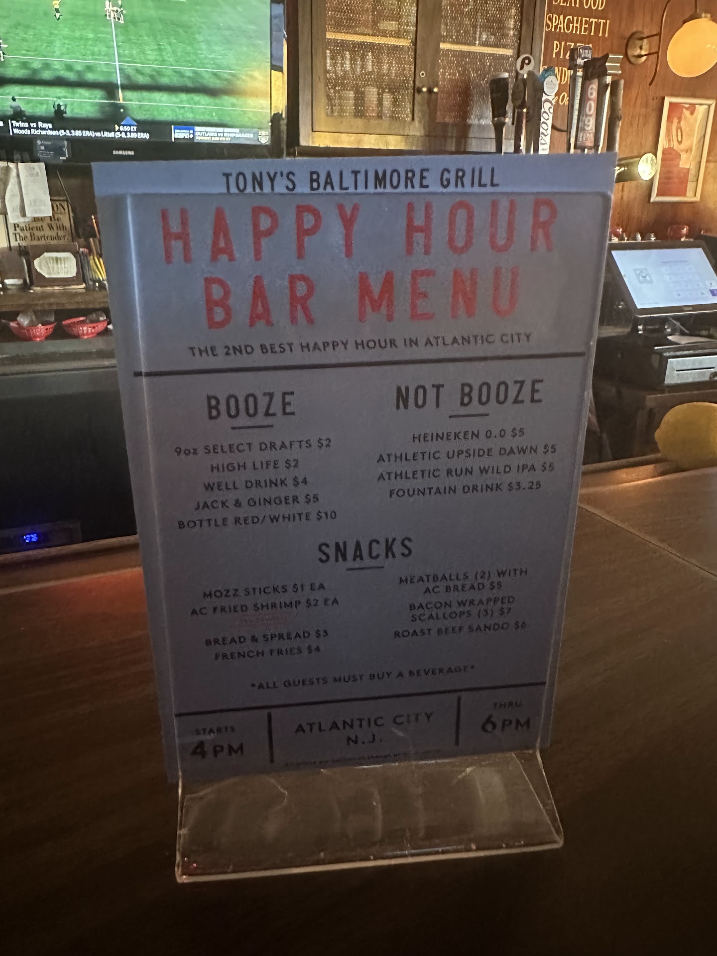 Read moreIts truly heartbreaking that after growing up in AC so long and not wanting to go so far i can't feel comfortable at the bar across the street from me because they always act like im not there when i sit at the bar, i order the same thing at least once a week, recently they messed the order up and blamed it on me (sometimes they get it right no problem) , i drink here once a week for the past 2 years and they continue to ID me every time. I have never seen a group of bartenders collectively not acknowledge that i have come here so many times and still find it necessary to ID me.