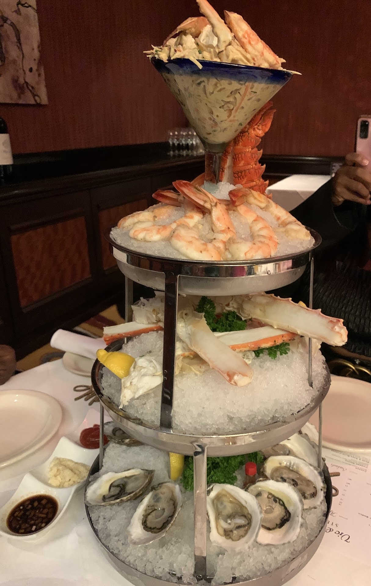 The filet and sides weren't any more exceptional than what I would prepare at home. Rave worthy for a dinner party but not topnotch. I ordered the night's special a filet that had blue cheese topping mashed and spinach. I ordered the Crab Oscar topping too. Our waiter explained the additional sauce as a Bernaise with crab, which sounded perfect. Maybe I should have tasted the Bernaise before putting some on my file My filet had so much blue cheese it overwhelmed every other flavor on my plate and I love Blue Cheese. But having this much blue cheese dumped on top of a filet was not the work I expect at these prices. They need to learn how to make a proper topping