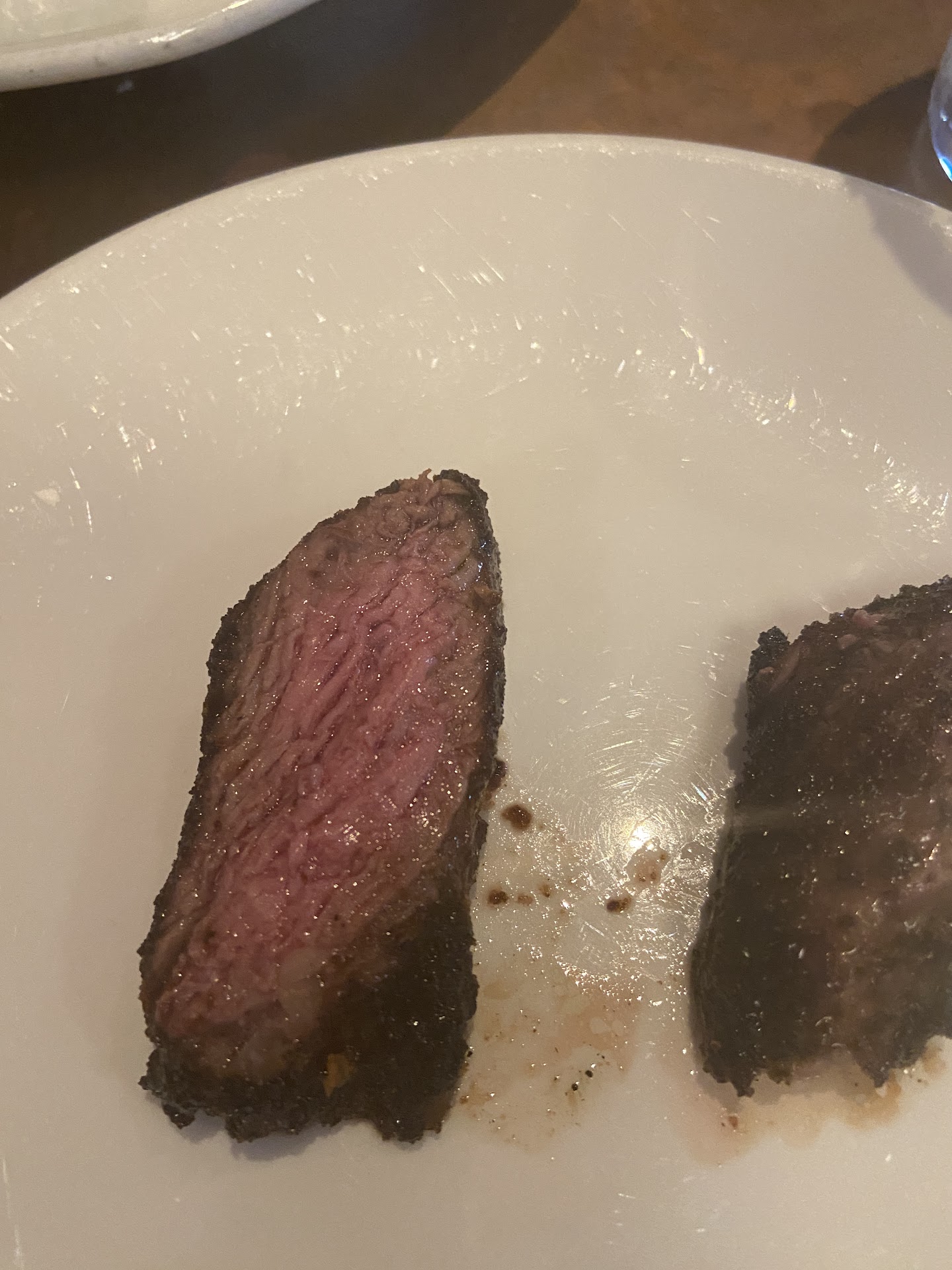 The only option for side for the $33 steak is French fries. The substitution for sautéed spinach as a side came with a $2 upcharge - again not disclosed. Mashed potatoes were on the menu with another item, but the chef would not allow them to be substituted for French fries so we had to order them as a side. We were charged EIGHT DOLLARS for a side of mashed potatoes.