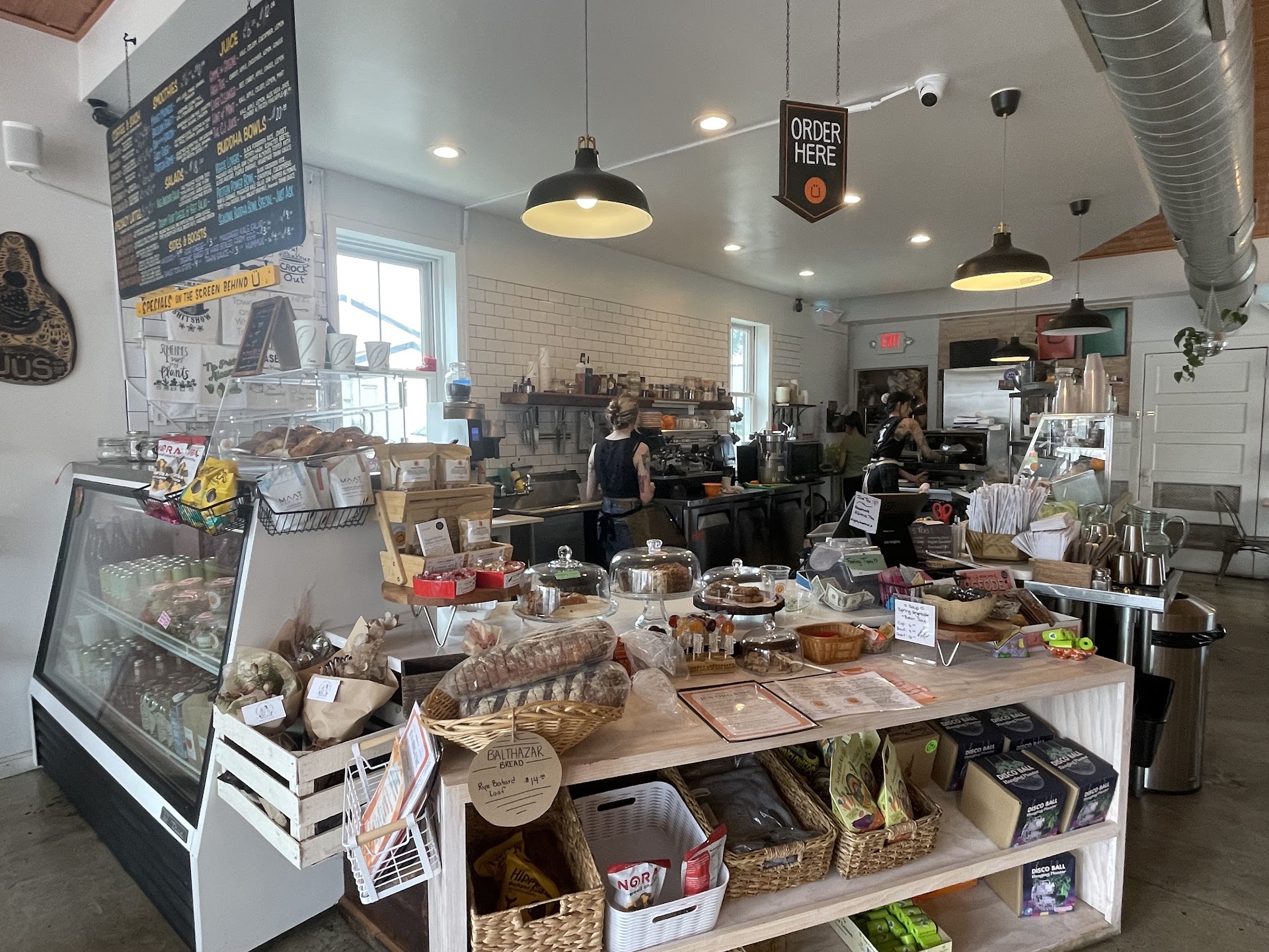 Great selection of baked goods, various products and smoothies. Atmosphere is great…I want to love this place…but the presumed owner (tall, slender woman with short hair) has twice now been so beyond rude I will never come back.