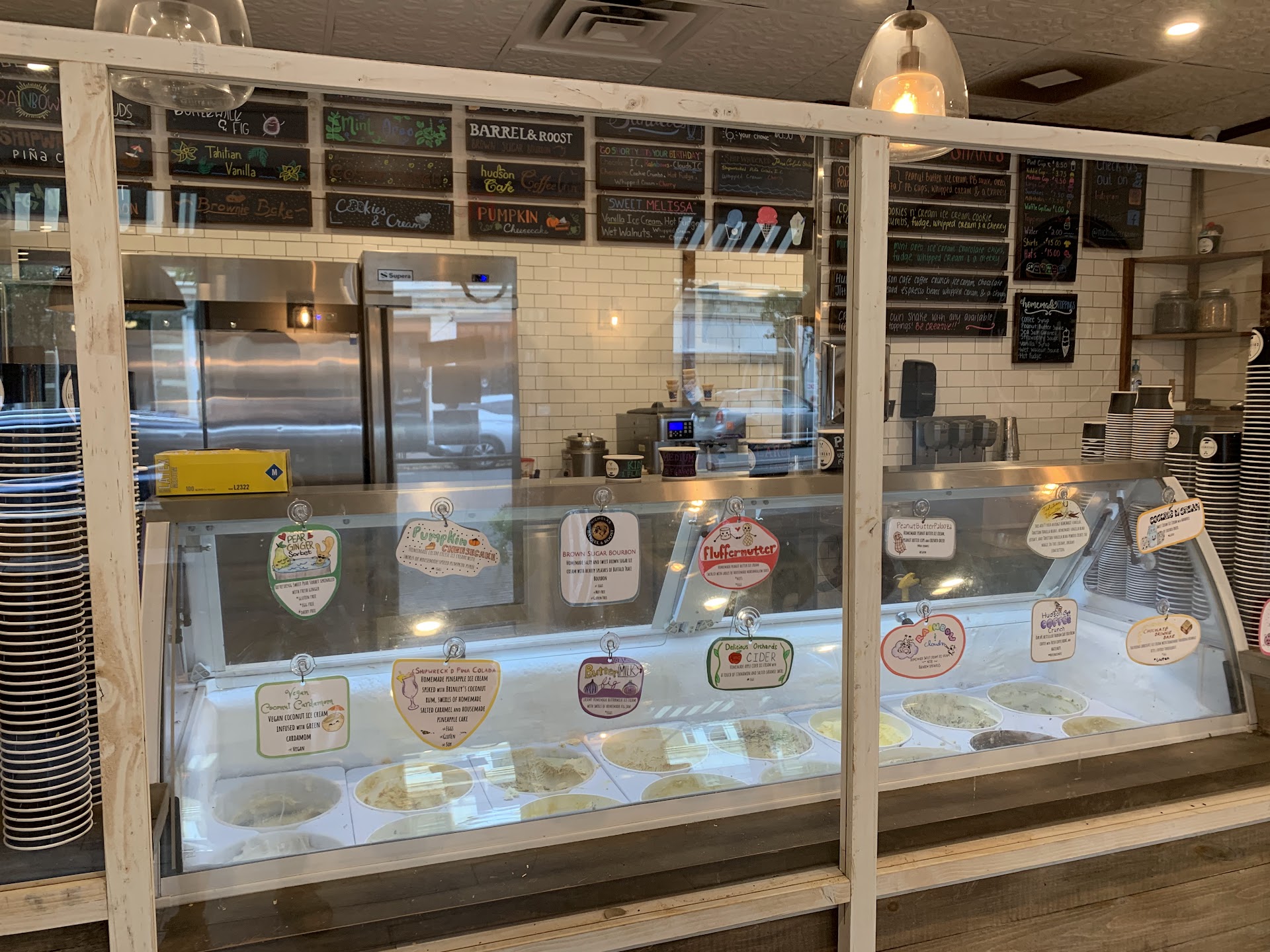 Pretty good creamery located in the heart of Atlantic Highlands. This is my fourth visit within the last three months. On my most recent visit we purchased three pints. It would have been four pints but my pockets were light. Each pint is just under $8. About half of the ice cream choices are on a seasonal rotation such as the pumpkin cheesecake, apple cider, and buttermilk fig. The customer service is good and the staff is polite. I believe everything is made locally in Tinton Falls and delivered daily to each store. 3.5 STARS but I will round up this one...