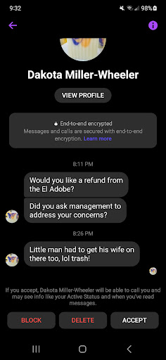 I gave this place 5 stars 4 months ago but not now!. I been eating here for 10 months. Until this day the food has been good and service has good to fair which I can accept. But today I had the misfortune of meeting Dakota. When I and my family walked into the El Adobe I was greeted by a female who asked how many in our party and I advised 4 and that I wanted a table not a booth. She advised she would look for a table and left us standing at the register. In the mean time my wife and sister went to the restroom while we were waiting to be seated. She never came back but a Man with Black Hair who later advised his last name was Miller walked up to I and my Brother in Law wanting to help us. I told him we wanted a table. He grabbed some menu’s and began walking to the end of the dining room where he began laying menu’s on the table of a booth. I told him that I did not want a booth and that we wanted a table. His facial expression and attitude changed immediately. He then led us to a small room next to the register that contained yet another booth. I consider a booth as a table that has bench seats that are not adjustable in distance from the table and a regular table (what I was requesting) to be a table with individual chairs that can be moved in position. Apparently Mr. Miller does not understand what a regular table and chairs is. He then pointed at that booth and told us we could sit there. I then told him again I did not want a booth and wanted to sit at a table. He then told me in a snippy and rude tone that we could use that booth or leave. I then pointed to a table that was in a rear dining area by the bar where other customers were eating and told him there was a table there pointing at the table. Miller then told me the waitress for that area was no longer working and I needed to leave. When I didn’t just immediately walk to the door he again loudly with great anger told me to leave now! I then told him very clearly that I would leave when my wife came out of the restroom and not until then. Once my wife and sister came out we left and once outside I only returned to get his name for this review to which he told me his name is Dakota Miller. Now, First, if he didn’t have any available tables that we could sit at he could have calmly advised us there were no tables currently in service and that we could wait until one became available. He could have told me this professionally, calmly and not attempt to order me to follow his demands. Secondly he could have just as easily placed us at the table I pointed out as it was only about 10 or 15 feet from the main dining area. I am sure it would not have killed the waitress to carry our food an extra 10 feet to satisfy a good tipping customer. However, if the second option was just to much an inconvenience refer back to the first option to kindly tell me we could wait for a table. The bottom line here is that if I was starving and Dakota Miller was giving food away I wouldn’t touch it and I will never set foot in the El Adobe again. I will also make sure that any of my friends both in Oklahoma and Texas knows what happened to me today. You had a happy good tipping customer for life until I crossed paths with your son today. Something else that I noticed today while looking at some other reviews before starting this one. It sure seems that most of your very bad reviews come from out of state customers who are passing thru your town. Just an observation? If I could give Dakota 0...