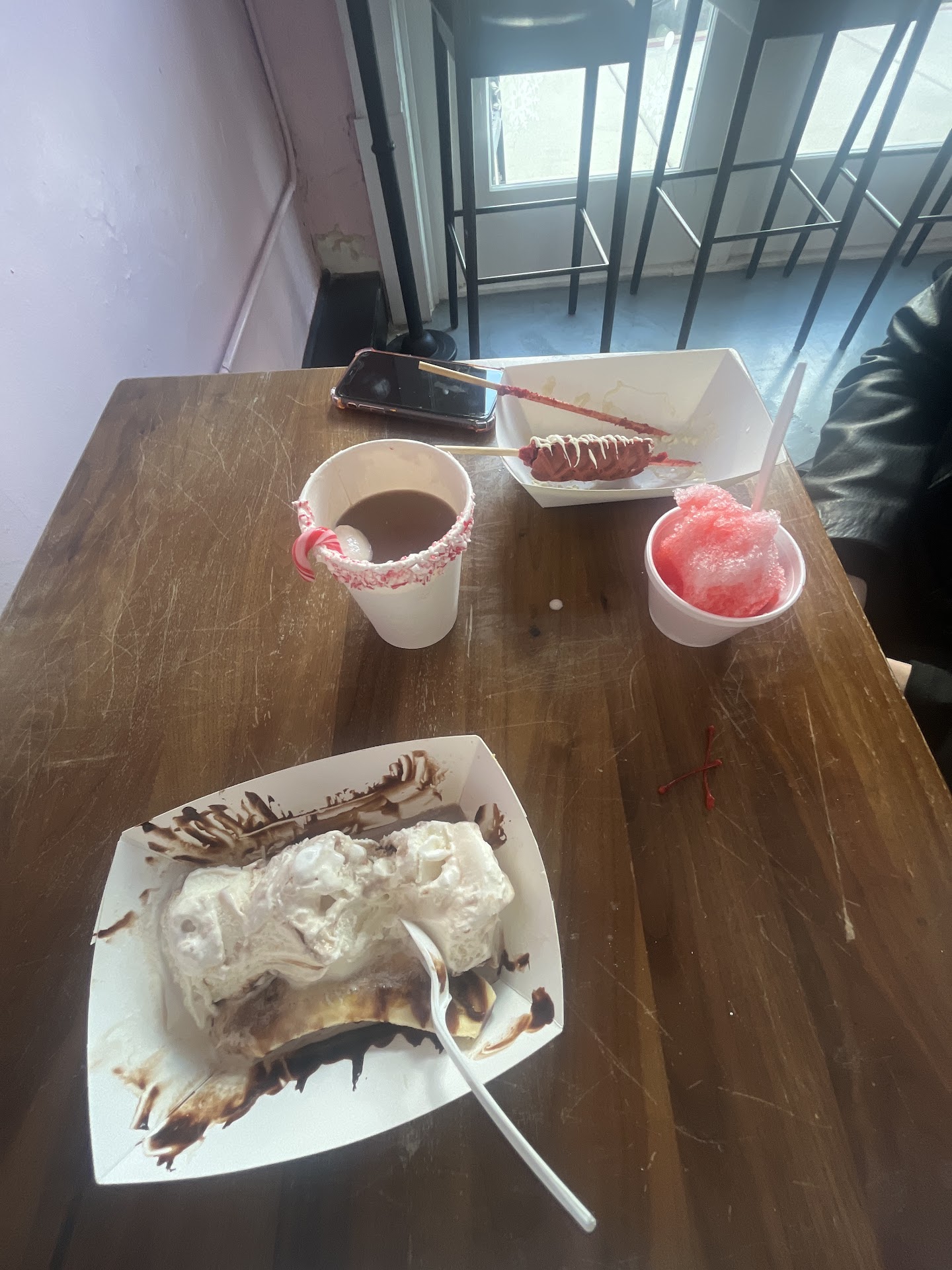 Read moreWent into the store and immediately greeted. Told us (me and my girlfriend) that they had 2 menus and proceeded to show us the other menu. Very quick to get our order. Had a velvet lolly waffle a banana split. With candy cane lane hot chocolate. And a tigers blood snow cone. Very amazing I have no complaint and I would definitely recommend this to other people that are passing by this place. Prices are eh but to me it was...