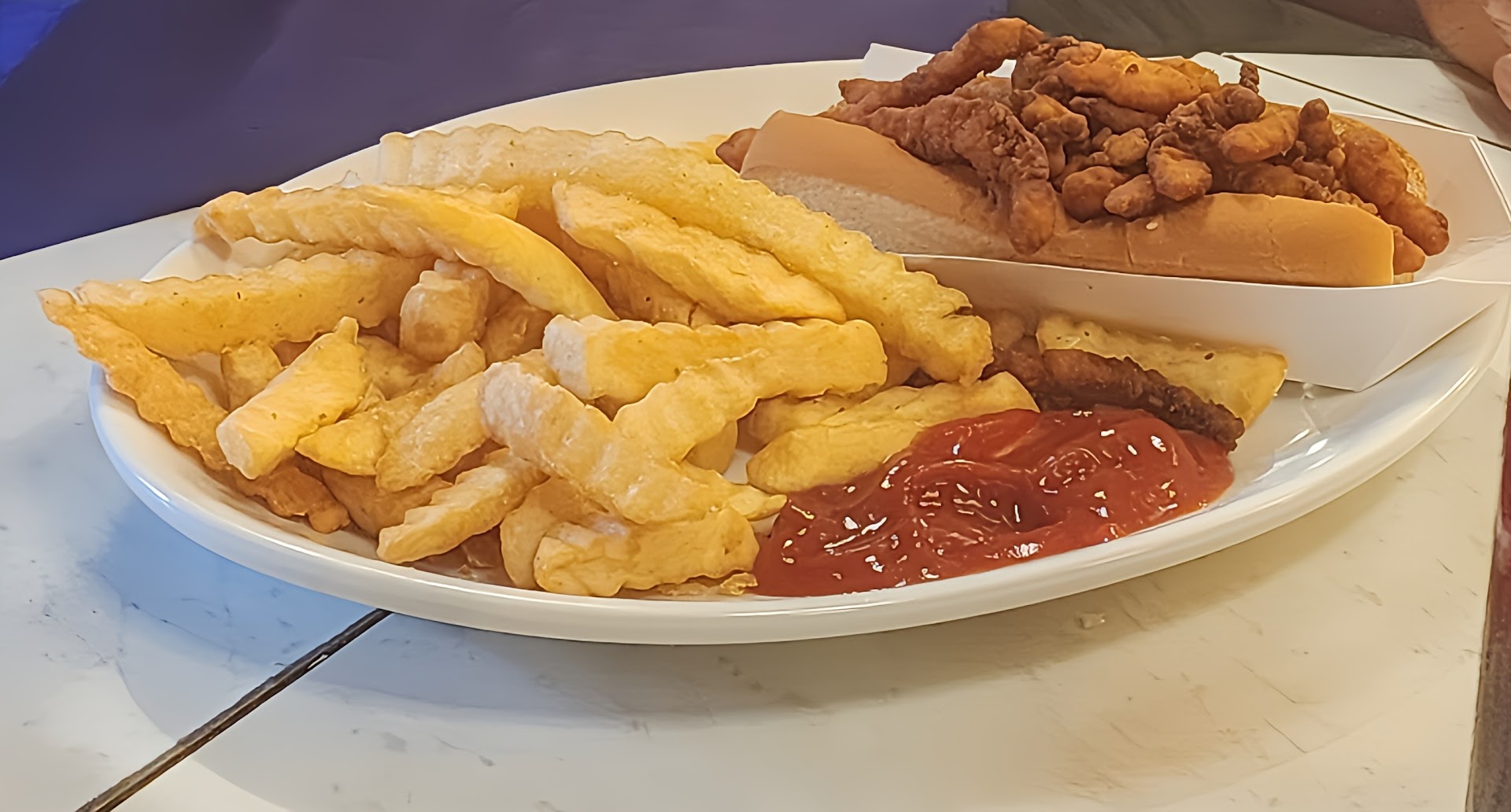 The inside dining area was large enough to seat a good number of people and you are also able to sit down to just order ice cream. The service was excellent with very attentive waiters and waitresses. They were quick to fill out soda refills and the meals came out quickly and hot. I ordered a chicken platter which is put together a little differently than your typical chicken tender plate. It came with chicken fingers, cranberry sauce, mashed potatoes & gravy. However, I substituted fries for the mashed potatoes. I also got both curly & regular fries. It was tasty and hot and the tenders & fries were hot and tenders were large (came with 5 tenders). Children got the sliders with fries and they were good. The sliders came in 2 sizes; kids & adult. The only difference is the adult has 3 sliders & kid has 2. Finally, my wife had the clam strips roll which left much to be desired. It was over fried and obviously no bellies so it was basically just fried bits on a hot dog roll. It came with fries. I honestly wouldn't recommend it, especially if you are a true New Englander.