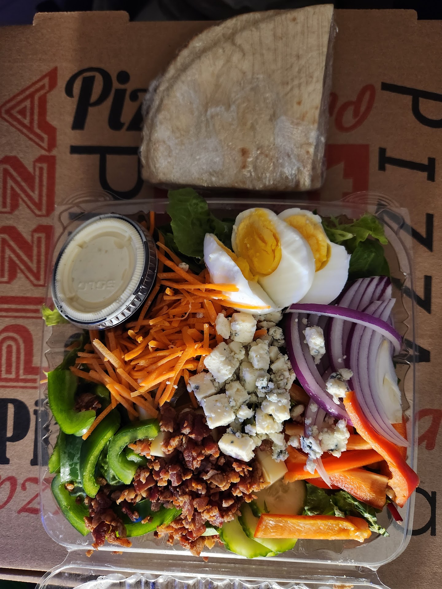 Read moreI used to visit Eli's and when this place moved in the changed menu left my regular order of Ziti and Sausage there with Red Sauce gone. On top of that as a regular Slice user, I found it odd that a new owners/new menu place somehow because it was the same building and address maybe... Idk, but it didn't start fresh on Slice but inherited over a thousand Eli's reviews. Makes no sense and Idk really why they would but that's a Slice issue-- I'm just saying the why of why I waited so long to try Bonilla's. Anyway I did and found the pizza decent enough though I prefer it a tad more done in the middle. That said the Cobb salad I ordered was phenomenal. It had cukes, red and green bell peppers, carrots, I'm forgetting what else. Everything was as fresh and crisp as could be. The bacon bits and boiled eggs were perfectly done. The oblicatory accompanying pita bread slices were the softest and again freshest I've seen in years. I also arrived a bit before my scheduled time as I prefer to be early for food than letting it sit any. The place looks the same but I get even more family vibe now as it was a pretty young fellow manning the counter who I'm going to guess is a son. Anyway he was very attentive and the service along with the food very good. If anyone hasn't tried them yet, all I can say is that for the cost of one meal you really should. I...