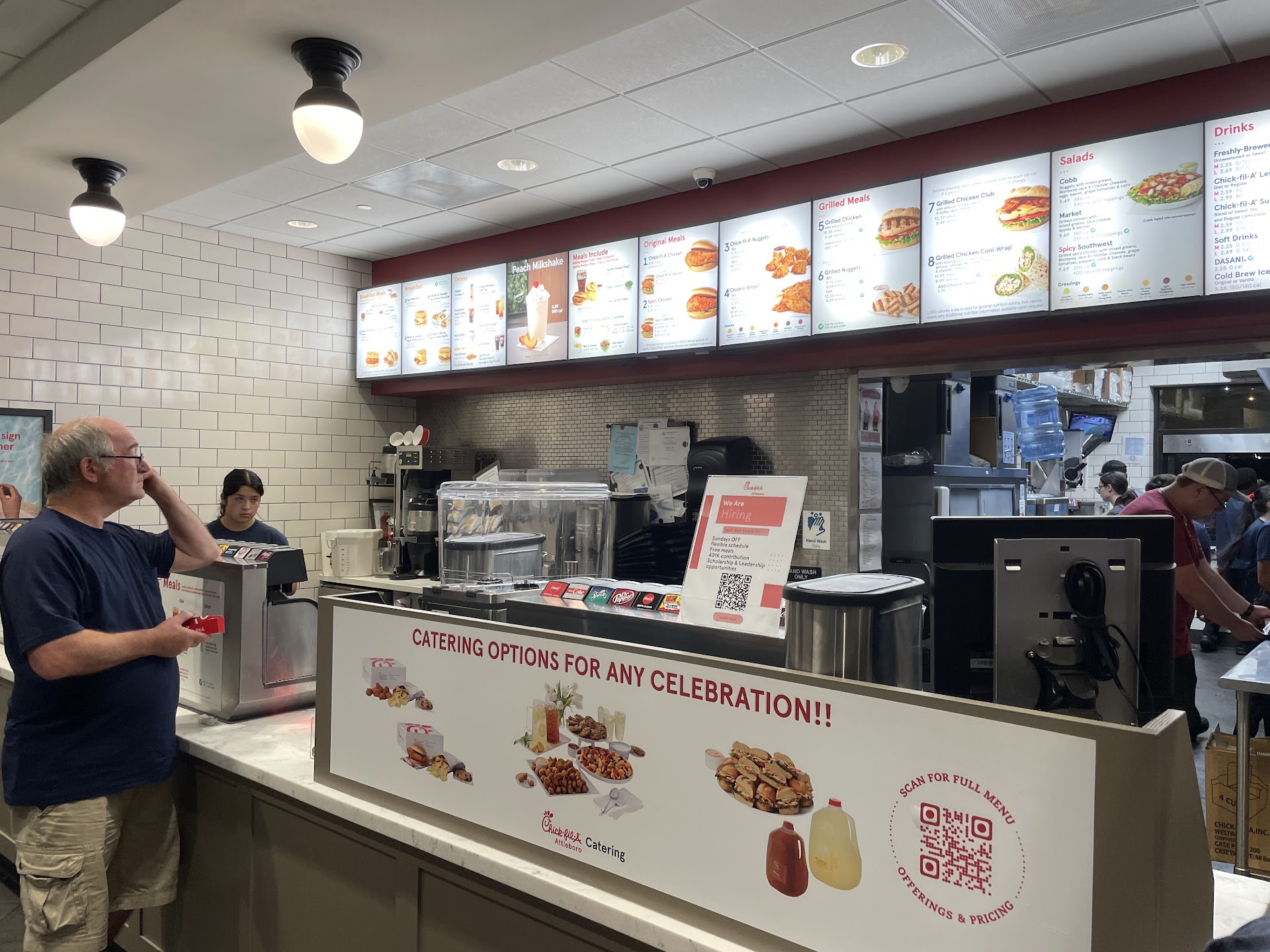 I didnāt receive my complete order, the, chocolate milk with the kids meals wasnāt included, no sauce and the staff was very rude. I ordered a Classic Chick fa la sandwich and was given a spicy sandwich that was wet on both buns. Iām unable to process spicy food due to stomach issues I also ordered a Ice cream cone and the guy grab it with his bare hands all over the cone. When I asked for another cone two little guys started to laugh as well as the Manager. I did t find any humor regarding this matter. The manager indicated thatās how they serve the cones. I told her that the employee had his hands all the way up the cone touching the ice cream she reiterated that how they are served that extremely unsanitary and not safe for the consumer. Unfortunately I didnāt have time to go back to request a refund and I didnāt feel like the manager would correct the order from previous conversations.