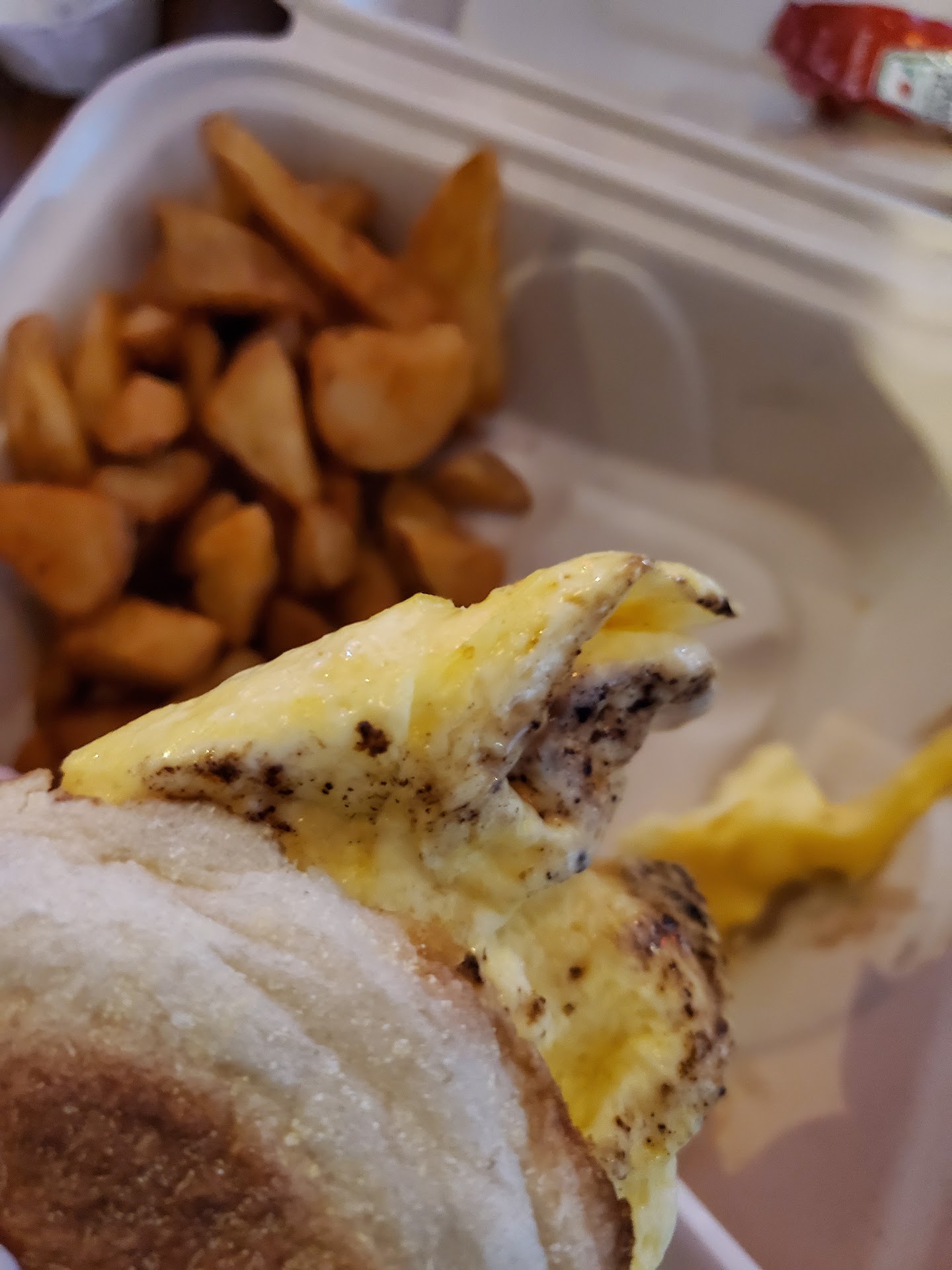 The fries were half-thawed at best. We caught out waitress’ attention and she attentively addressed the issue and returned with a replacement batch. I’m not sure if they were cooked or still cooking, as they sat there simmering in a thick layer of oil. I ventured to test one, causing an unhealthy and unnecessary amount of grease to spirt from its sides. My wife, my more cautious counterpart, dabbed them with some napkins to absorb the grease, hoping they’d be fine after the fact. Still, they were just uneatable. Less messy, but still uneatable.