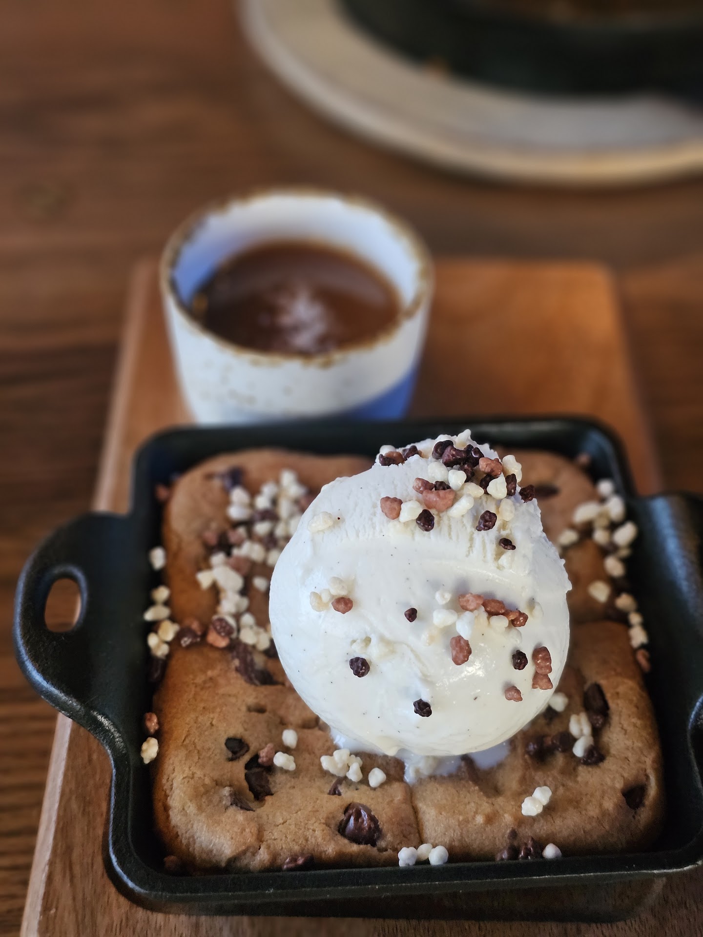 For food, we split an appetizer of the broccoli tempura and it was great. My wife got the chicken pot pie and I got the tortellini bake - both very good. The chicken pot pie did not have any peas or corn in it which is unusual. The tortellini bake contained phenomenal ricotta cheese, braised short rib, and Italian sausage. They were served in the cast iron skillet that they were baked in, which was very strange - would rather have them transfer it from the skillet to an actual dish or use cookware other than cast iron to bake them. Cast irons certainly have their place, but not for these types of bakes (in my opinion).