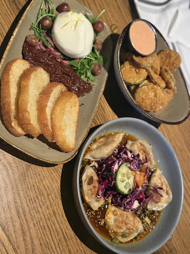 We started with the fried pickle chips, chicken dumplings, and burrata — each one was fresh, tasty, and beautifully presented. The fried pickles were perfectly crispy, the dumplings were savory with a great balance of seasoning, and the burrata was creamy and delicious. For our entrées, my husband’s steak was cooked perfectly and so juicy, the fries were crispy and addictive, and my General Tso’s chicken was bursting with flavor. You can tell the chef really put care into every plate. I also had two Tavern House Sangrias, which were refreshing and complemented the meal perfectly.